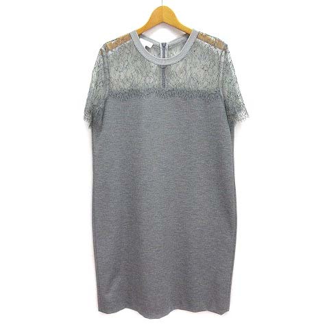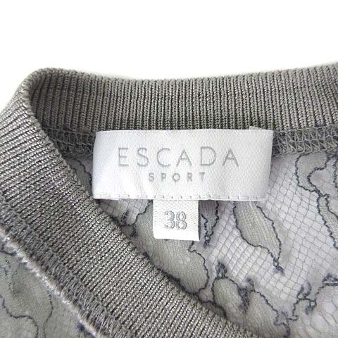 エスカーダ ESCADA SPORT シアーレース ポンチ 切替 ワンピース 半袖 ミニ グレー 38 レディース