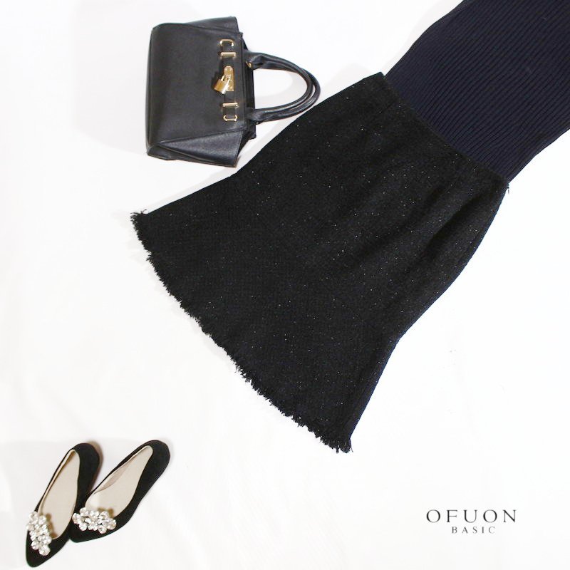 ラメウール単色ツイード生地、ファスナーは左側、上品な印象のお洒落な1枚です。