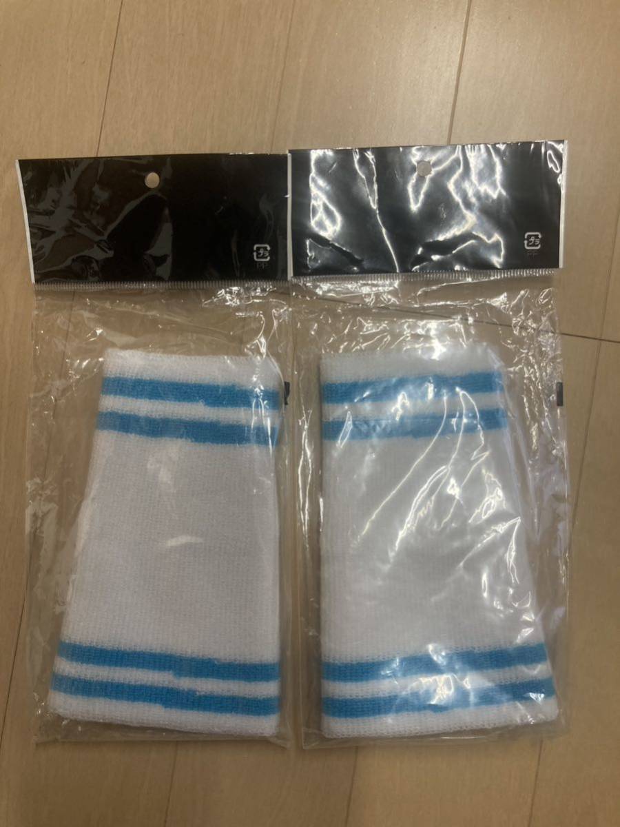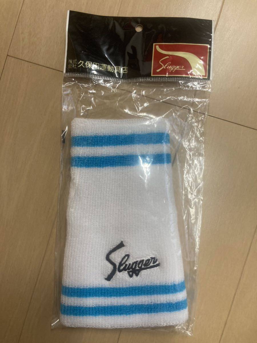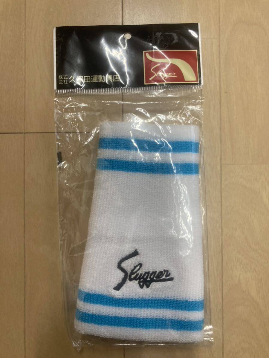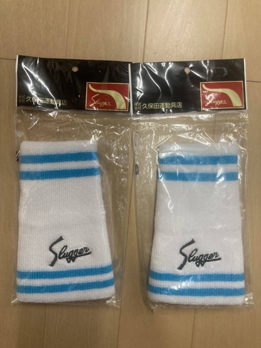 新品未使用 久保田スラッガー モデル リストバンド 両手 水色×ホワイト