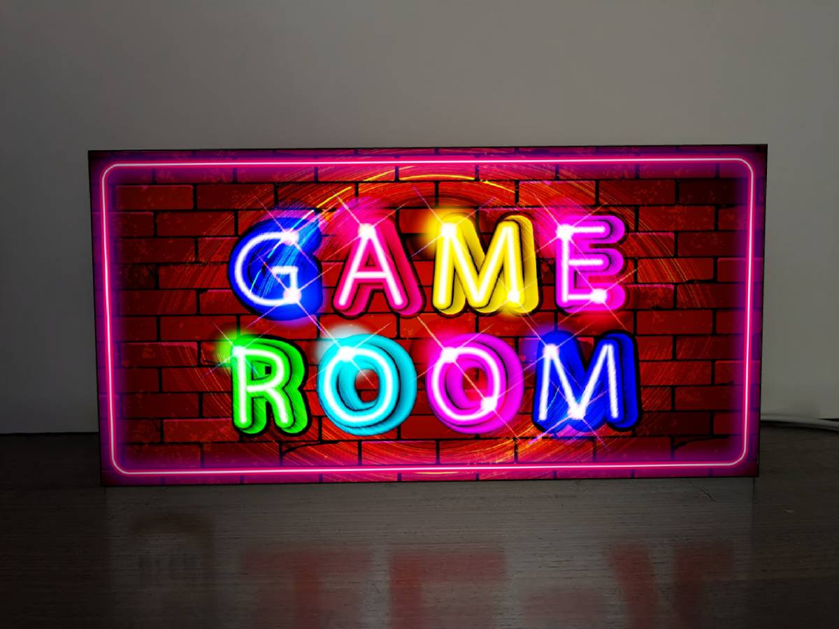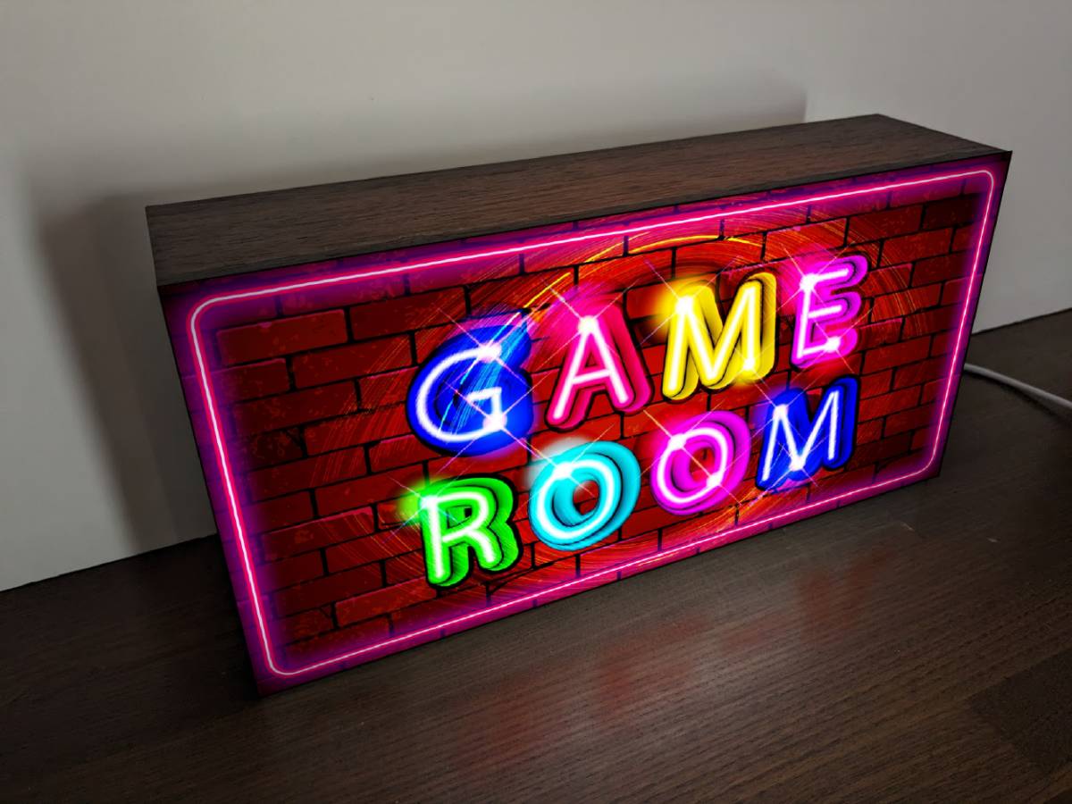 ゲームファンのゲーマーの皆さんのご自宅・店舗・ガレージなどのちょっとした寂しいスペースをライトで明るく華やかに飾れる他には無い電飾看板です★ プレゼントにも大変好評頂いております★ 本体(アクリルプラスチック製)・表示面(IJバックライト発光フィルム) 縦20センチ×横40センチ×奥行き7センチ、 電源コード約1.5m弱でON/OFFスイッチ付き、 価格もリーズナブルに設定しておりますので、軽量なので置物として誰でも簡単に設置可能です。 お店やお部屋のインテリアに・・話題のネタに・・プレゼントなどに最適です。 ※本体は傷が付きやすく検品は行っておりますので、製作過程の多少の傷は予めご了承下さい。 その都度、完全受注生産ですのでご購入後のお客様ご都合キャンセルはできません。 不良品に関しては、交換・返金対応しておりますので宜しくお願い致します。 ◆他サイズもご用意しておりますので、ご質問欄よりお待ちしております。 ●基本サイズ縦10センチ×横20センチ (3D造形BOX黒本体) ※LLサイズ以上は、コンセント電源のみ(事業者様対象)となりますのでご注意下さい。 ●Mサイズ縦150mm×横300mm ●LLサイズ縦300mm×横600mm ●3Lサイズ縦400mm×横800mm ◆オリジナルデザイン・オーダーも承っておりますので、お気軽にお問い合わせください。 自社製造製品 アメリカン雑貨 インテリア雑貨 GAME ゲームセンター アーケードゲーム レトロゲーム ゲームルーム ゲーマー BAR アメリカンレトロ カフェ caf 店舗 自宅 キッチンカー フードトラック 屋台 パーティー イベント サイン ランプ ライト 照明 看板 インテリア雑貨 置物 雑貨 テーブル カウンター 電飾看板 電光看板