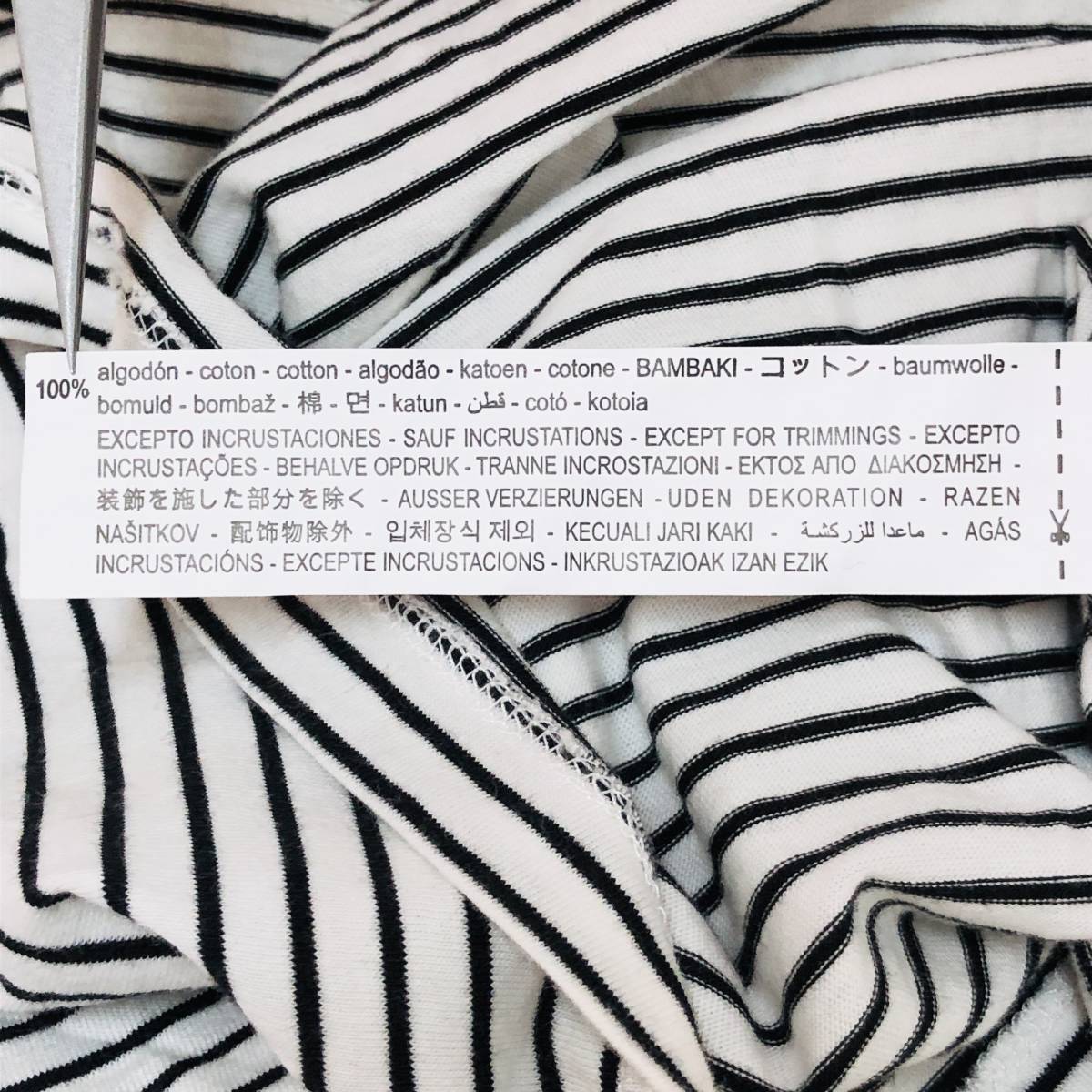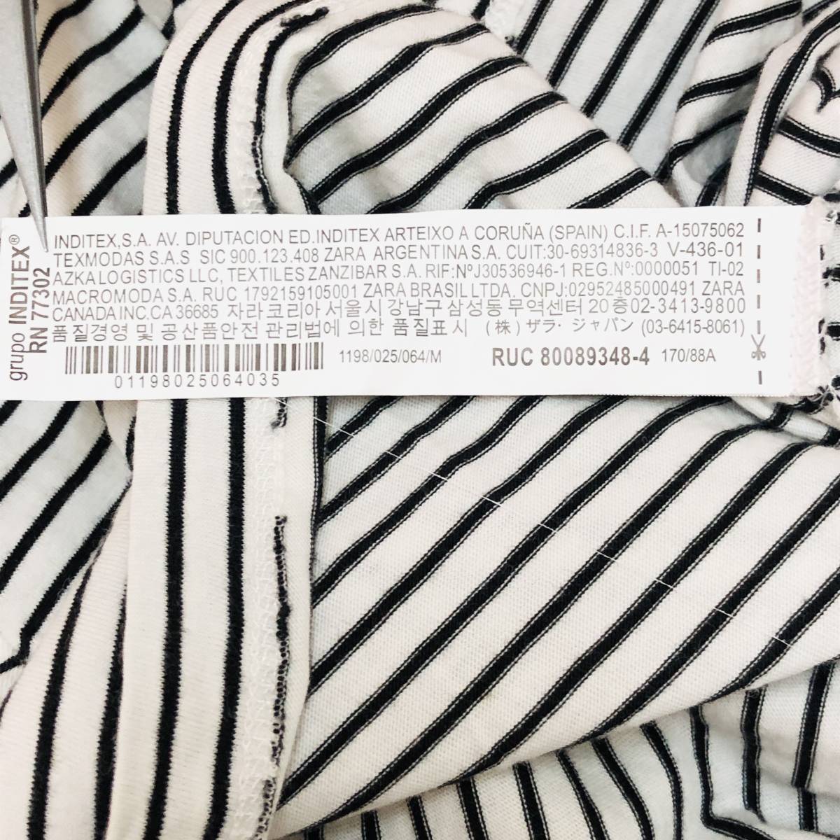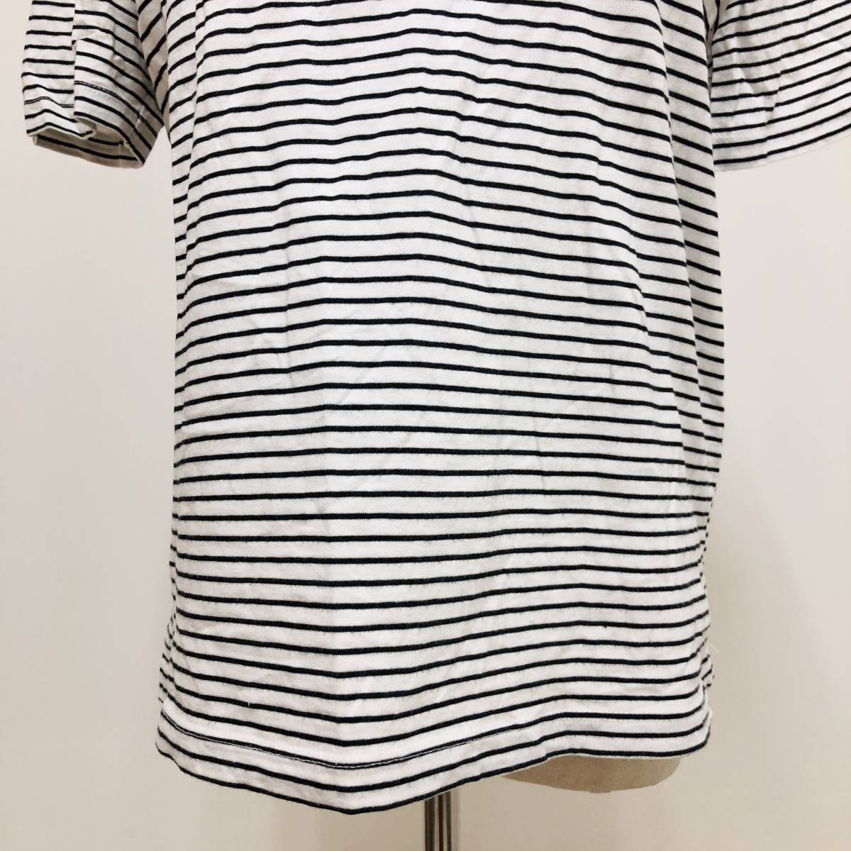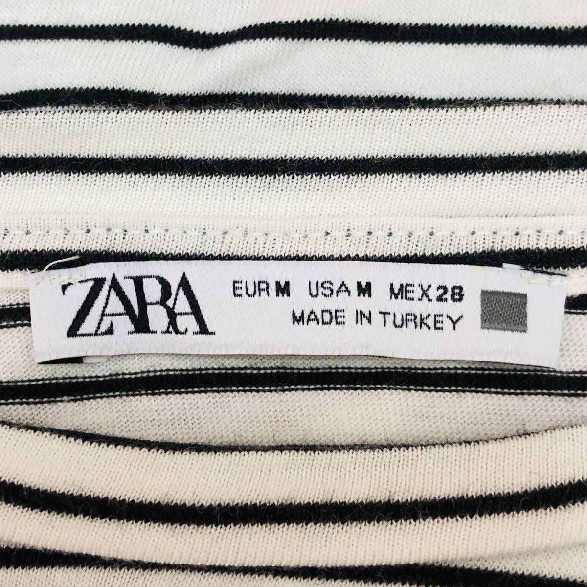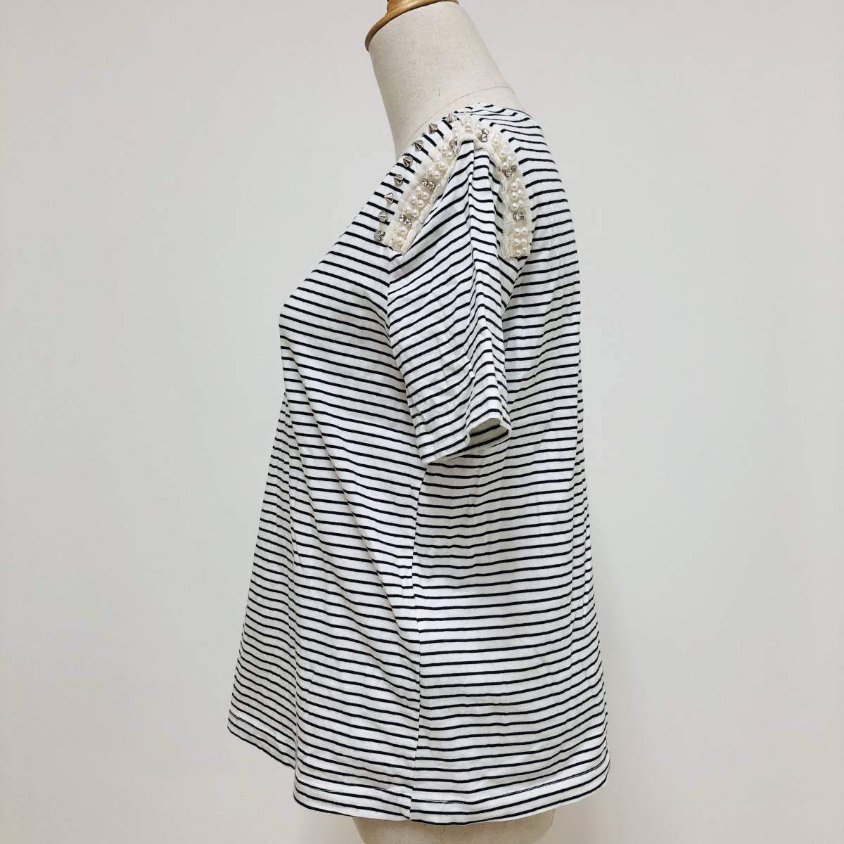 k0908 美品 ZARA ザラ Tシャツ コットン混 スタッズ ビジュー 薄手 丸首 夏 M 白 黒 ボーダー レディース 万能 シンプルデイリーカジュアル