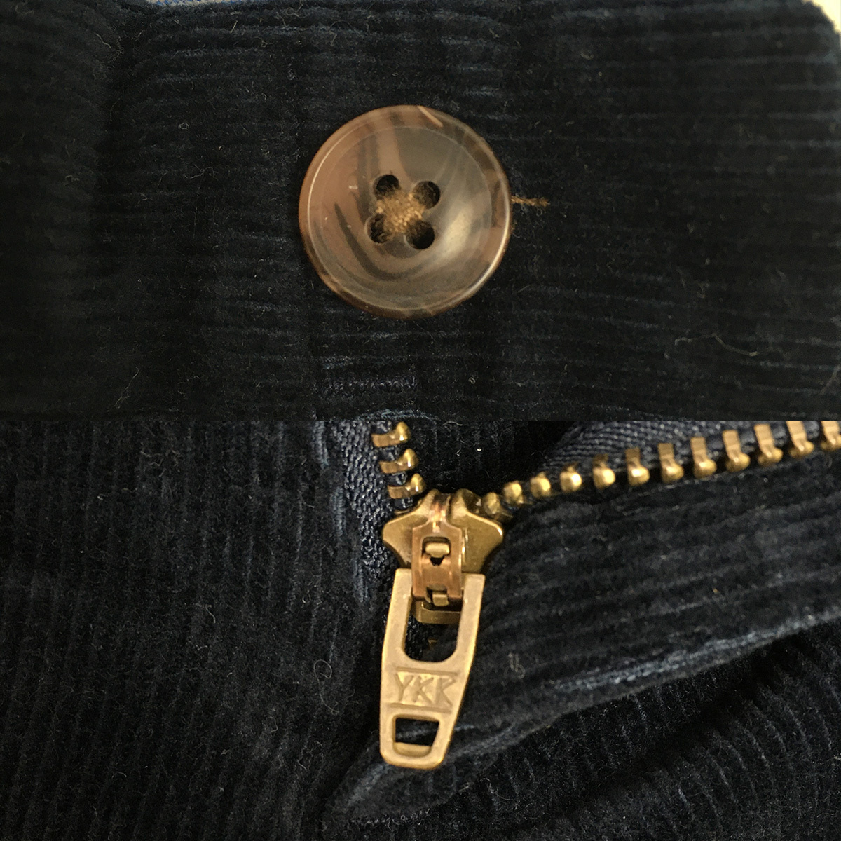 着用感はありますが、生地の畝が擦れて潰れてしまうようなダメージや、汚れのない良好な状態です。(写真参照)