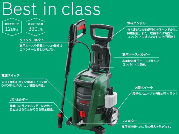 クラストップレベルのハイパワー! しかも軽量・コンパクト。洗浄力バツグンの高圧洗浄機