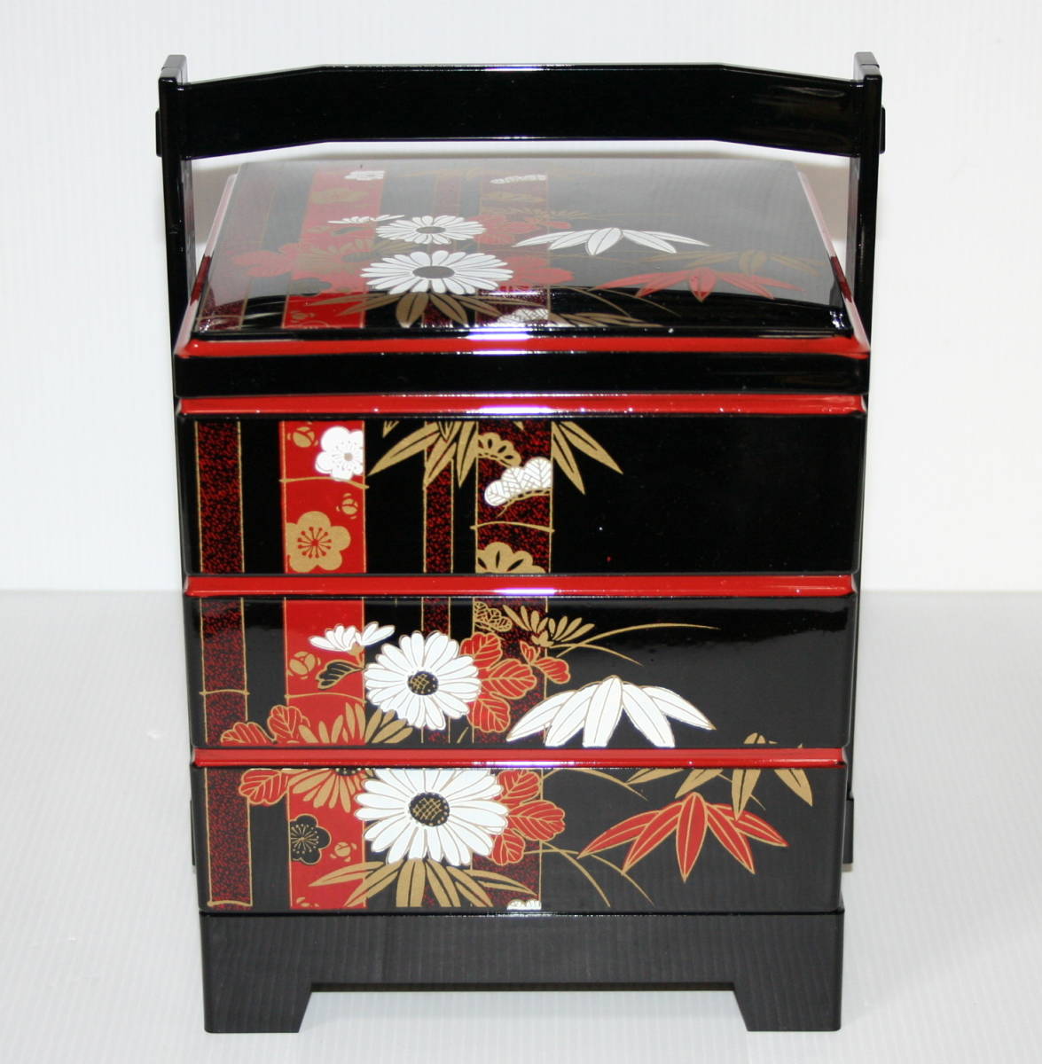 商品は、重箱 3段 プラスチック製の未使用に近い品で、写真のものが全てになります。