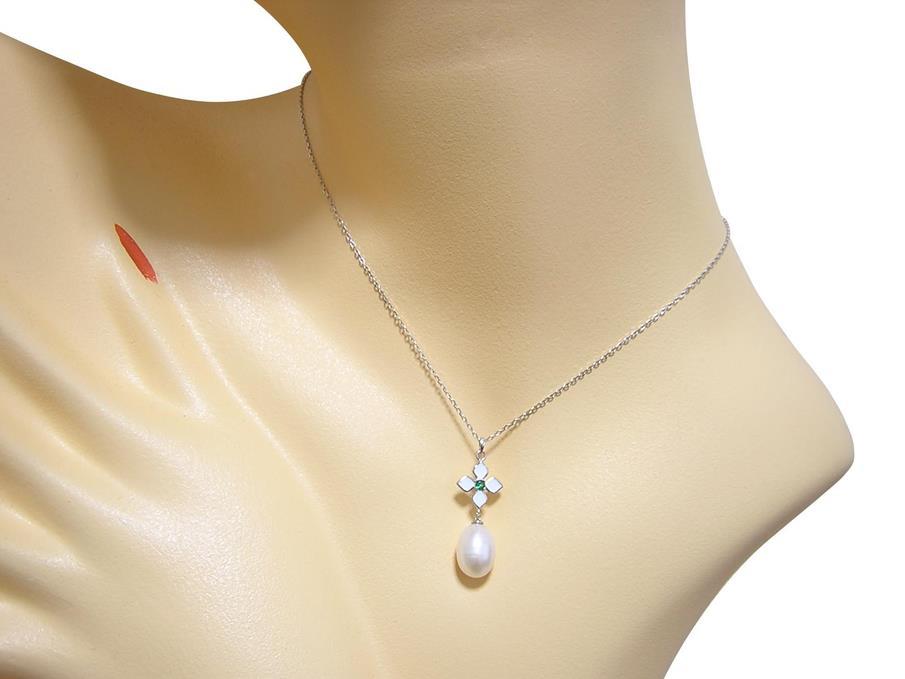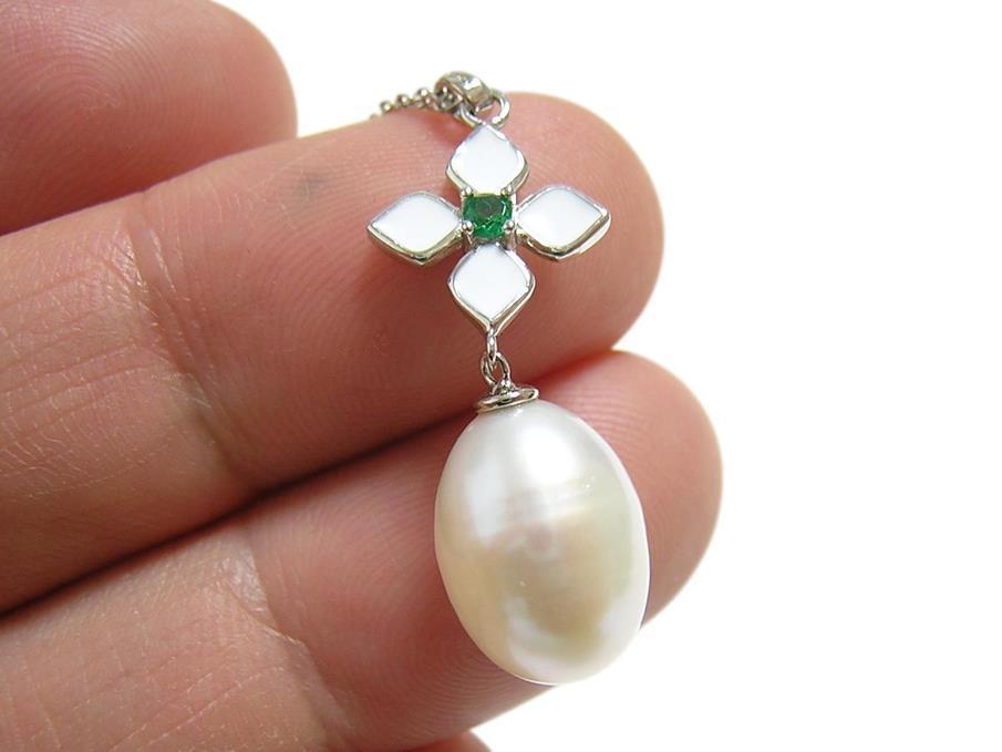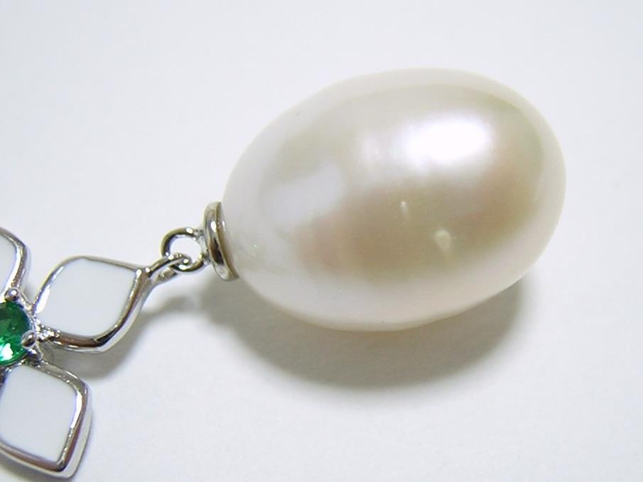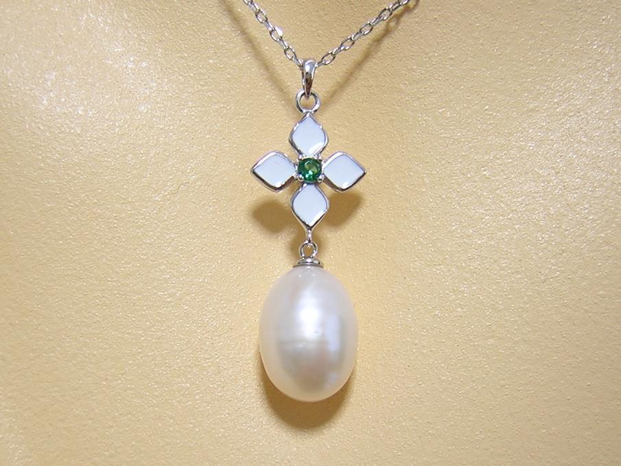 パールの大きさは約13×9mmで、表面に天然由来のキズがあります。 【中石】淡水パール 【産地】中国産 【処理】非加熱 【脇石】キュービックジルコニア 【重さ】4.0g 【サイズ】チェーン45cm(内アジャスター部4cm) トップ31×11mm カン内径:約2×1.5mm 【素材】シルバー925 (14金ホワイトゴールド仕上げ) 【刻印】S925 【状態】新品 |