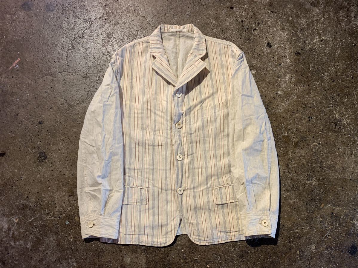 COMME des GARCONS HOMME PLUS AD1988 フロント切替 ストライプ柄4Bジャケット 1980s コムデギャルソンオムプリュス PJ-110760