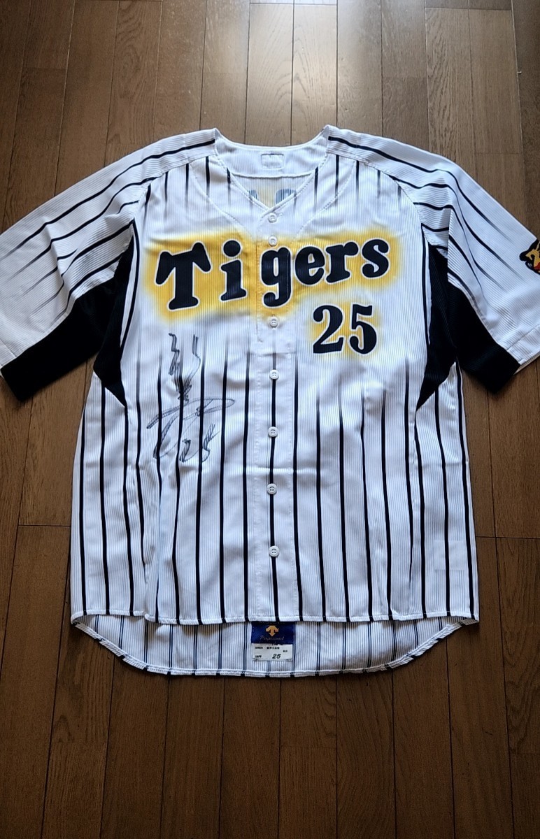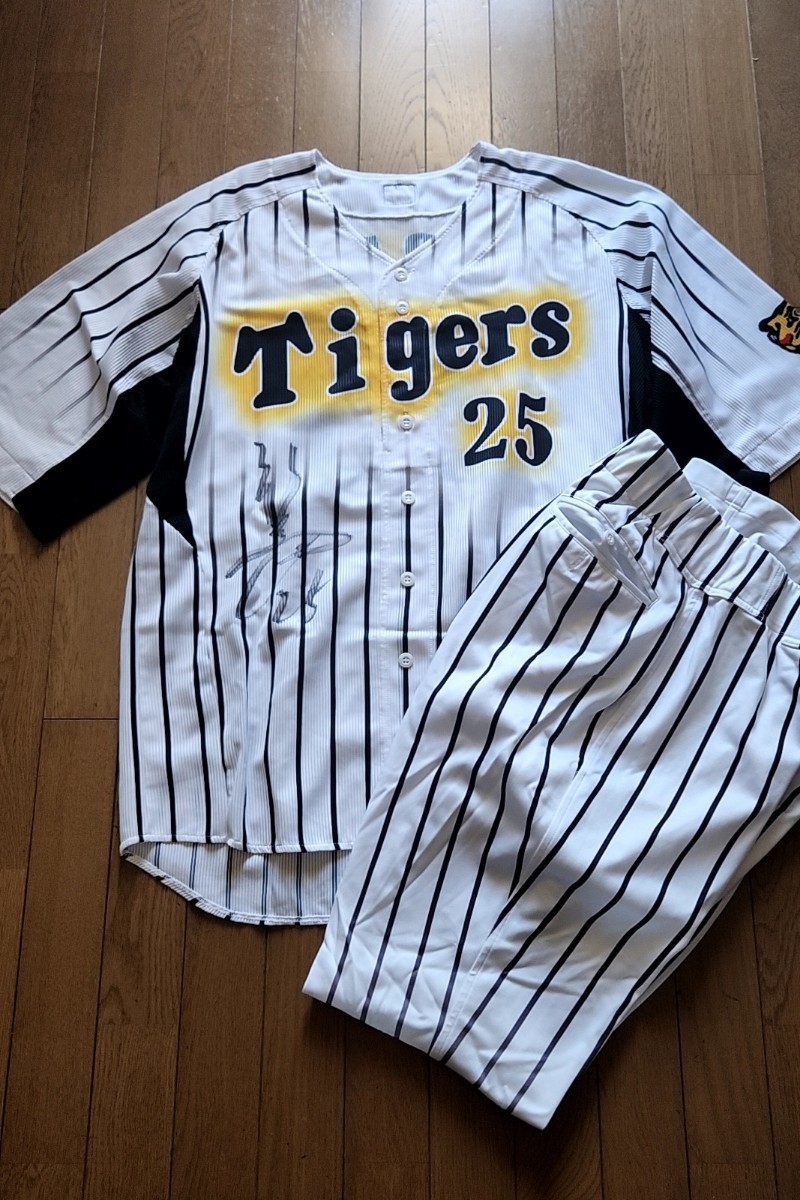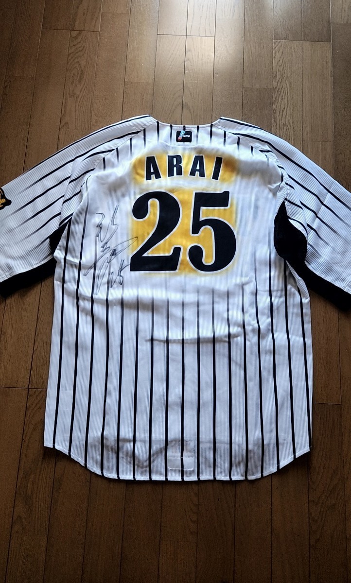 阪神タイガース 25新井貴浩選手 2008年実使用 直筆サイン入り交流戦ユニフォーム上下です。