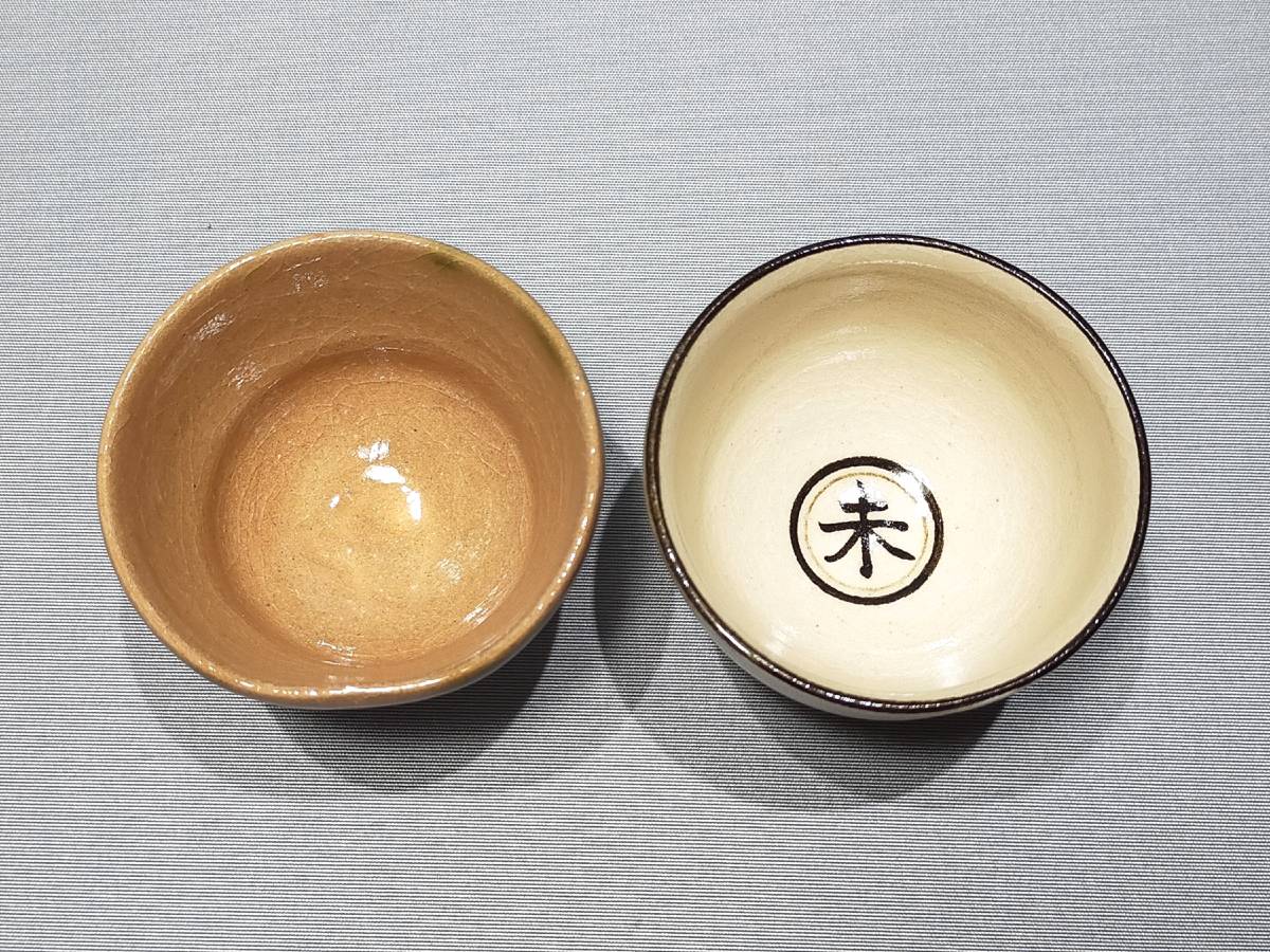 古曽部焼 酒器 義崇窯 寒川義崇 造 干支羊 御題街 酒盃 ぐい呑 双 一対 栞・共布・共箱