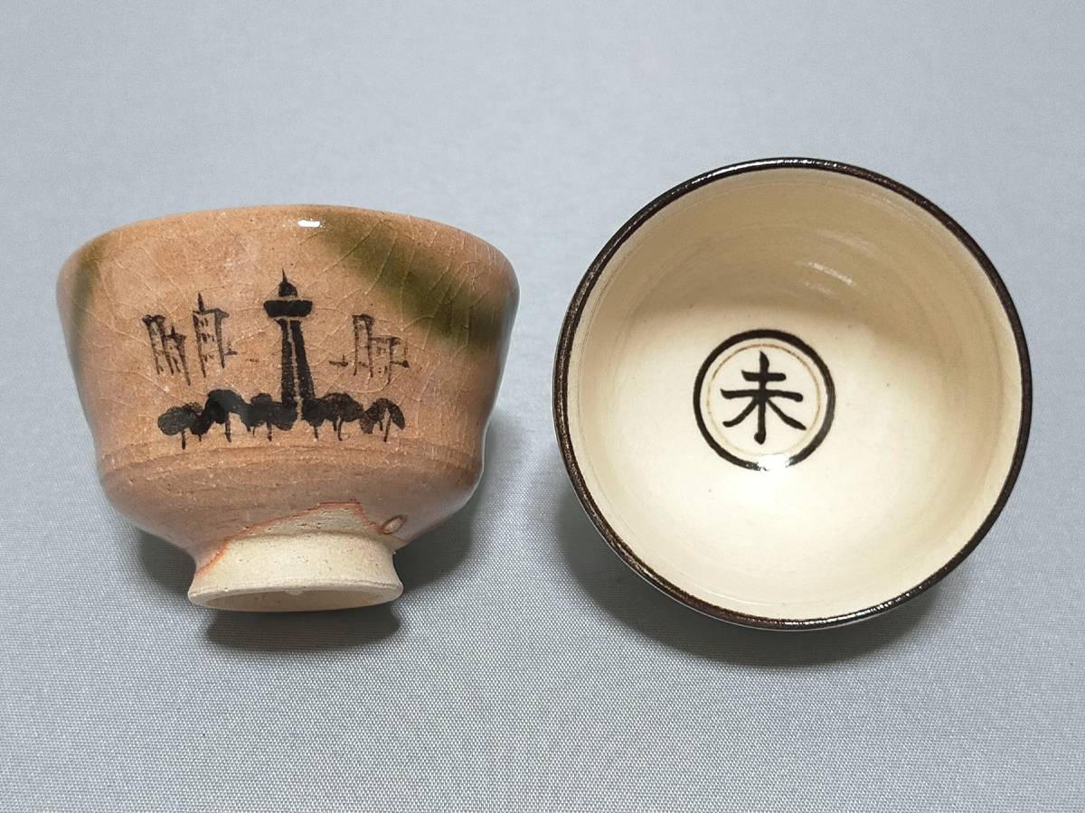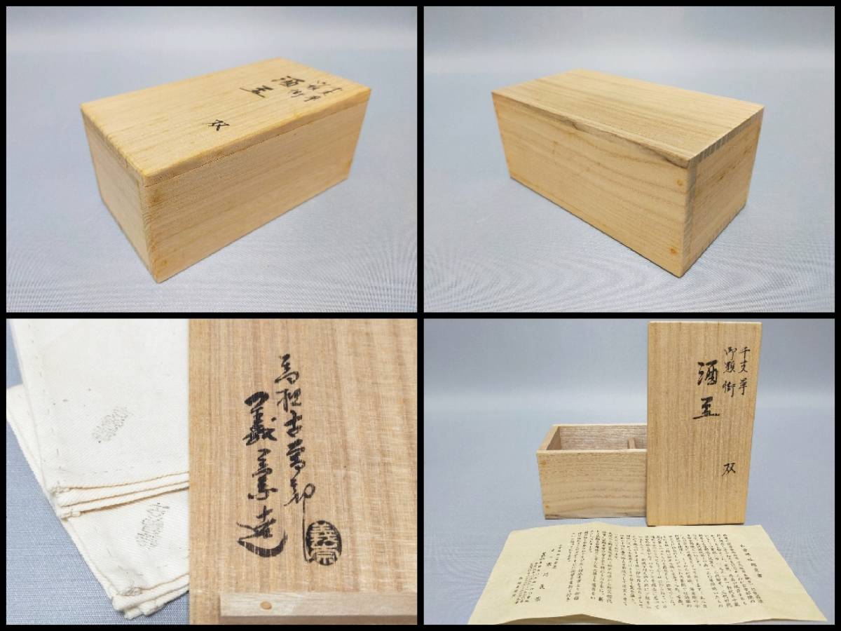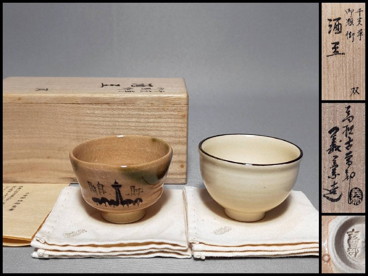 FI29 古曽部焼 酒器 義崇窯 寒川義崇 造 干支羊 御題街 酒盃 ぐい呑 双 一対 栞・共布・共箱