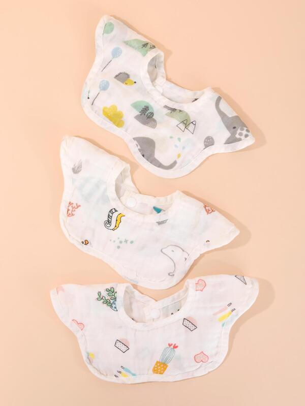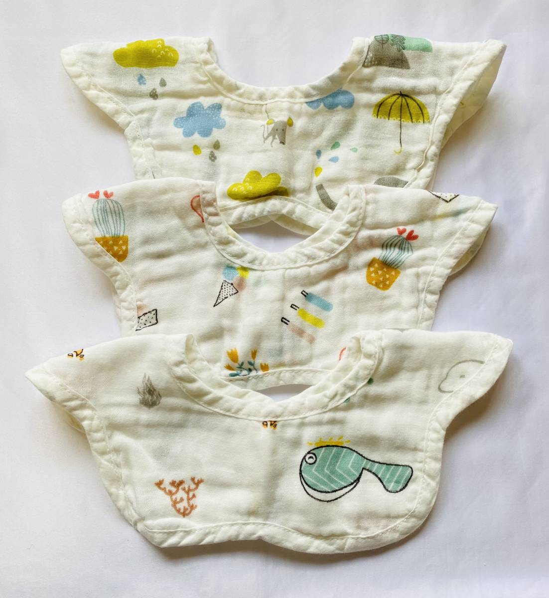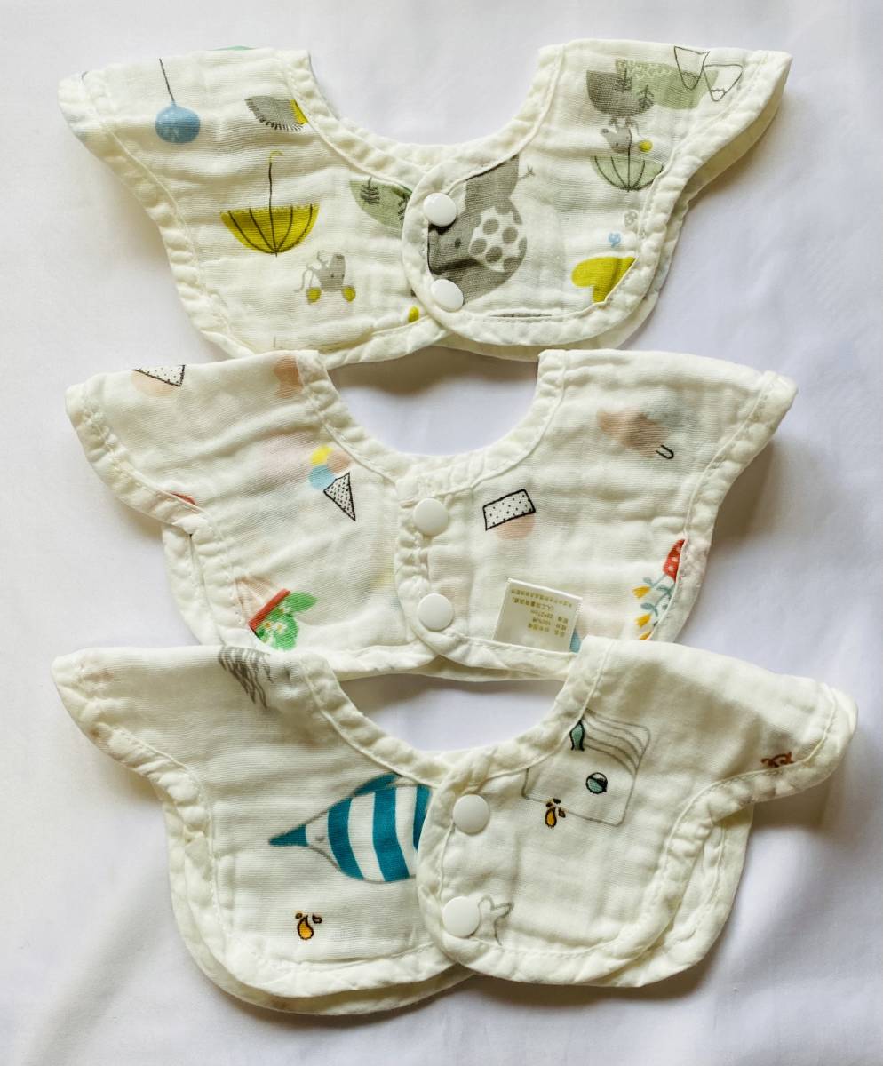 【新品】【送料込み】ベビー 丸型ガーゼスタイ3枚セット 夏向け素材 リバーシブル