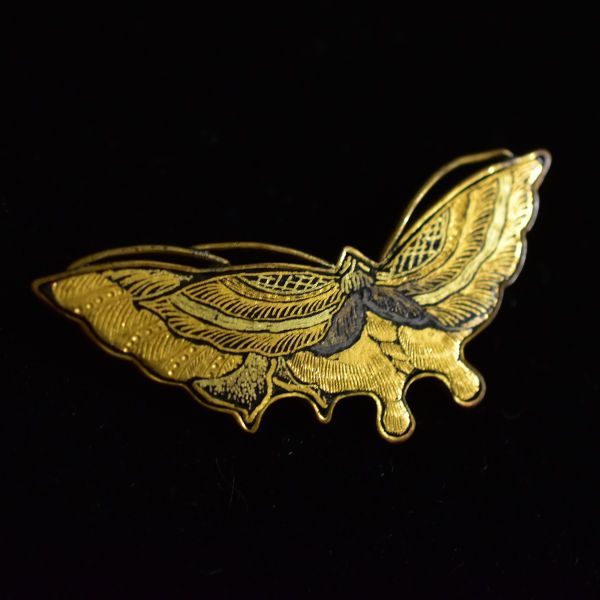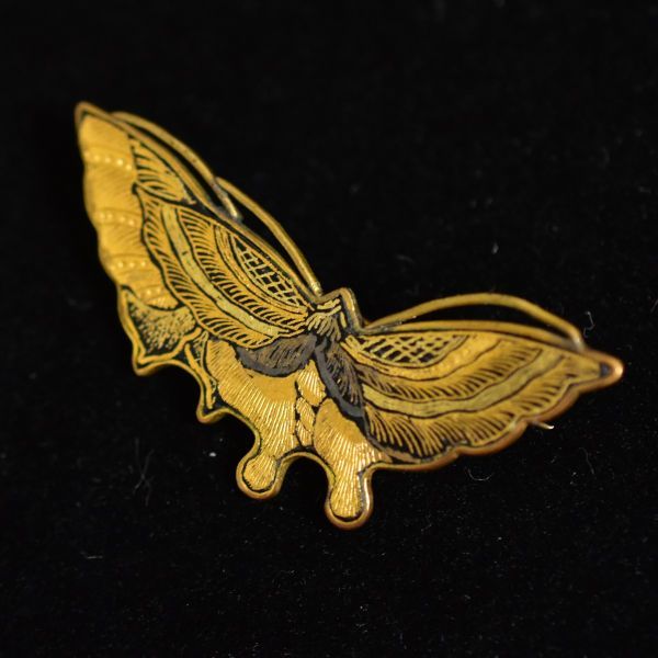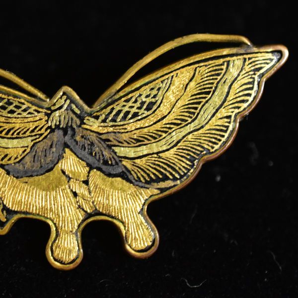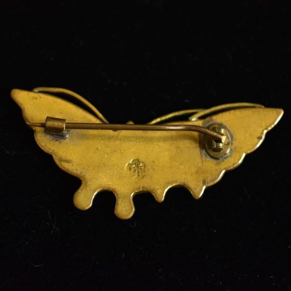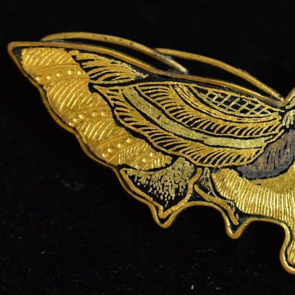 日本のアンティーク 江戸後期~明治期 金銀象嵌細工 蝶々のブローチ 在銘 本物保証