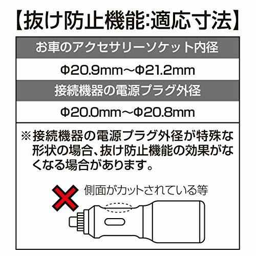 ・ブラック F314・・Style:1連ソケット コード4m F314・プラグとソケット両方にシリコーンリングを使用した、抜け防止機能搭載のコードタイプソケット。・約4mの延長コードがついており、リアのドラレコ設置にも使用可能。・通電確認用ブルーLED付きで、接続状態の確認ができます。・定格電圧:DC12/24V車専用(マイナスアース車)/出力:最大3Aまで50年以上も国内カー用品市場で実績を積んできた大手カー用品メーカー「セイワ(SEIWA)」から登場。・●プラグ部&ソケット部にシリコーンリングを使用したダブル抜け防止機能の付いたソケットです。・●プラグ抜け防止機能付きなので、ドライブレコーダーの接続電源にピッタリです。・●コード長が約4mなので、リアでの電源確保に使用できます。・●粘着テープで様々な場所に簡単に取り付けられるコードタイプです。・・ 【お求めいただく前に】・ 本製品はDC12V/24V車(マイナスアース車に限る)専用です。・※DC24V車でご利用の際は、そのまま24Vが出力されます。・抜け防止機能適応サイズ・お車のアクセサリーソケット内径:Φ20.9mmΦ21.2mm・接続機器の電源プラグ内径:Φ20.0mmΦ20.8mm