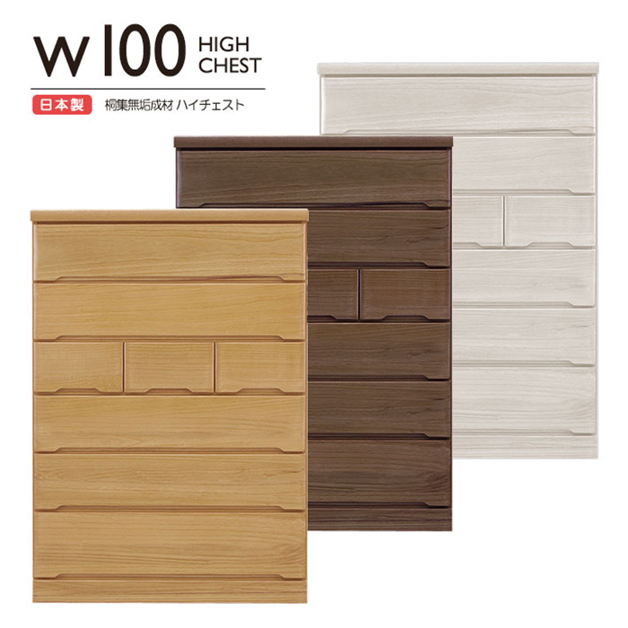 幅100cm ハイチェスト 日本製 国産 6段 タンス 箪笥 整理タンス 箱組み 重ね仕様 引き出し ナチュラル