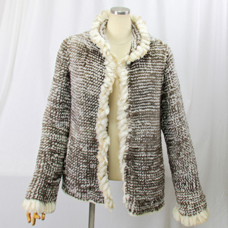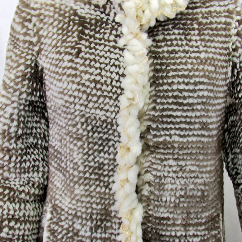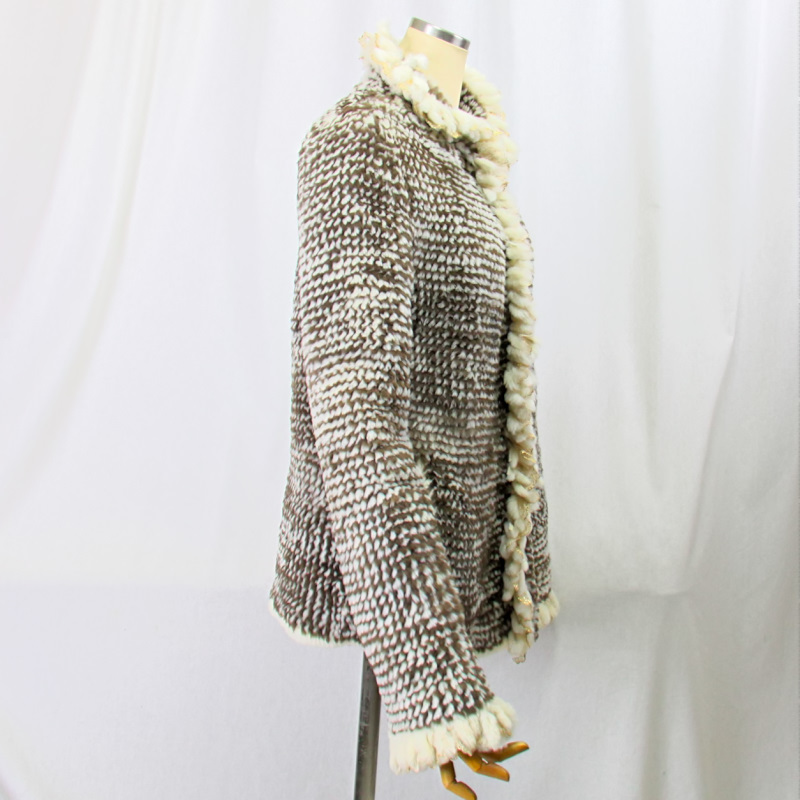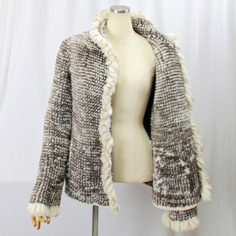 ヌートリアの毛皮は保温性が高く実用的で、 シルキーな心地よさを感じ もちもちとした柔らかさは ヌートリアが持つ魅力でもあります。 その滑らかな、さわり心地の良いヌートリアを 丁寧に編み込み衿、前立て、カフスに 綺麗なフリルを施して仕立てたジャケットです。 裏地は御座いません。 ★素材 ヌートリア ★サイズ 肩幅 : 42センチ 胸囲 : 100センチ 袖丈 : 67センチ(折り曲げ可) 丈 : 50センチ (ニット素材ですので多少の誤差はご了承下さい) ★カラー ブラウン系 ★付属 鍵ホック 3セット 両サイドポケット 各1 肩パット ★注意事項 なるべく実物に近づけて 写真を撮るように心掛けていますが モニターの発色の具合によって実際のものと色が異なる場合が御座います この商品は天然の素材を使用しておりますので 実物と画像のお色及び、多少のサイズ違い 多少の傷がある場合が御座います。 ニットデザインですのでサイズは少し変わりる事が御座います あらかじめ御了承下さいます様 よろしくお願い致します。 | |||