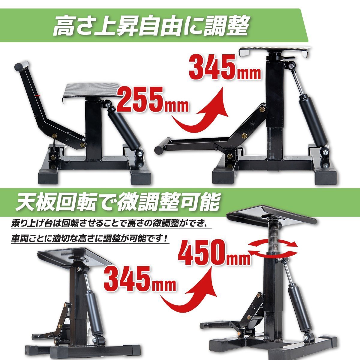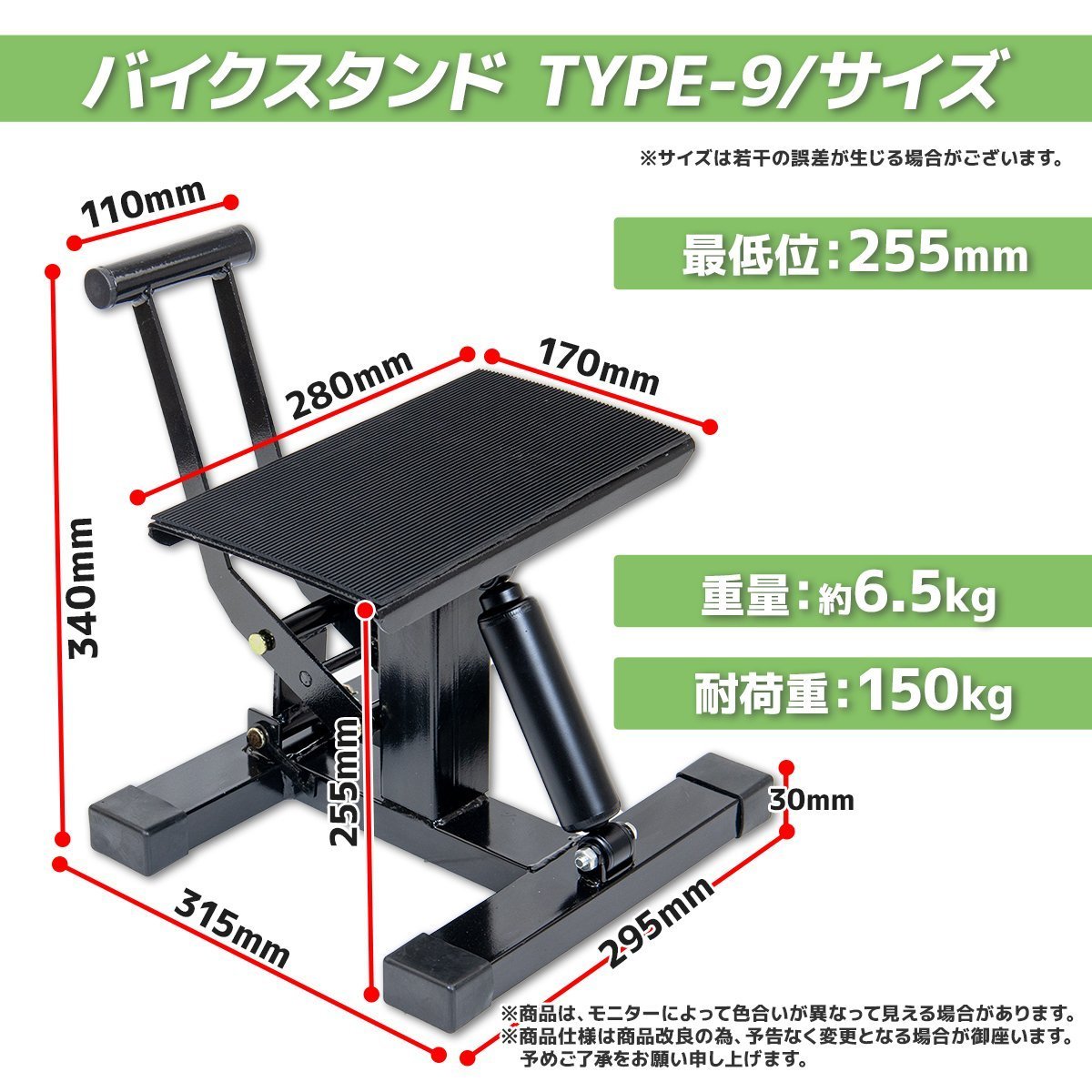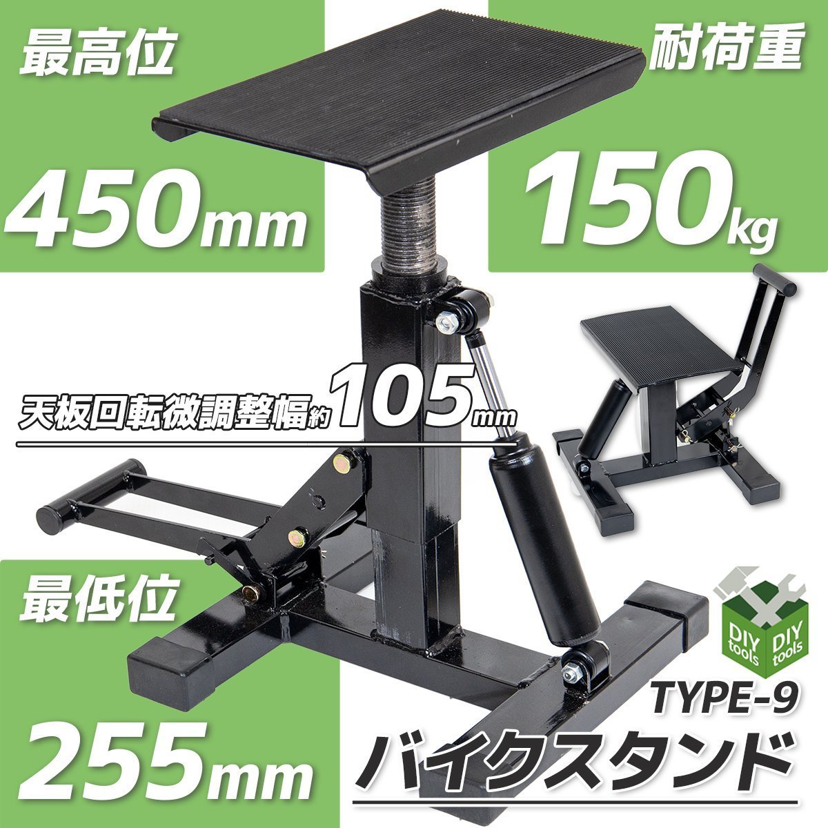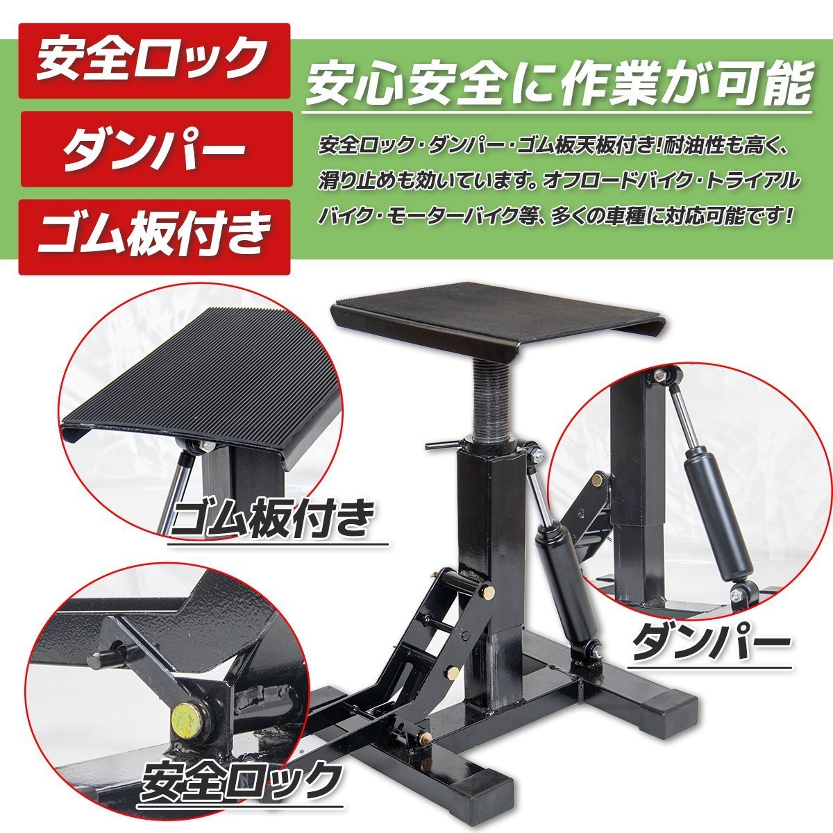 ダンパー式 バイクスタンド バイクリフト ダート用 耐荷重150KG/ 車両展示 整備 オフロード TYPE-9