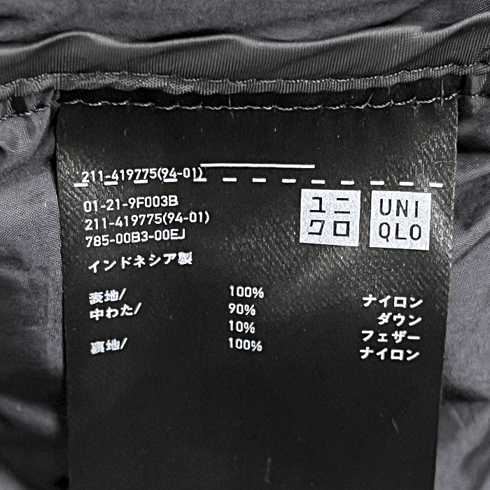 | 商品タイトル | ユニクロ ウルトラライトダウンベスト ノースリーブジャケット 無地 ハイネック ナイロン100%(ダウン90%×フェザー10%) XL 黒 レディース |