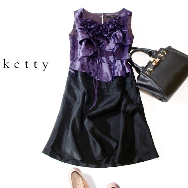 ☆☆ 美品 ketty ケティ ☆☆ 綺麗め 段フリル 2Way立体フラワー フォーマルワンピース 2号 M 春 夏 23C08