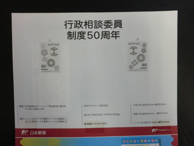 | ◎特殊切手2011「行政相談委員制度50周年」平成23年☆j05 | ||