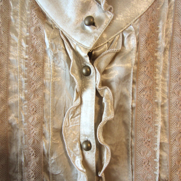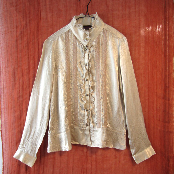 美品 プレビュー Prevew サテン 長袖シャツ ゴールド