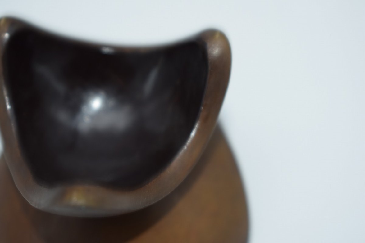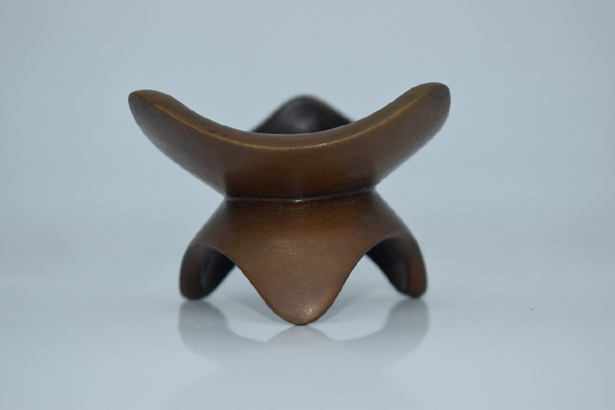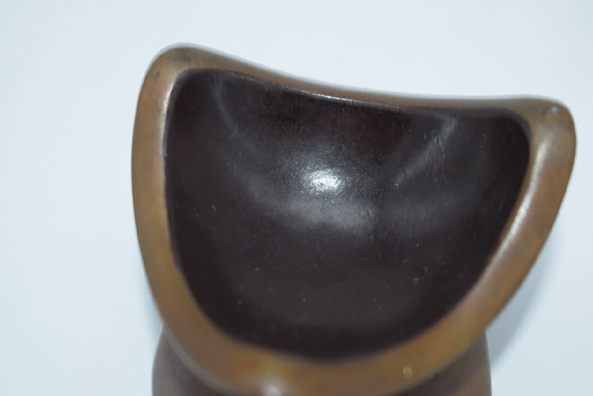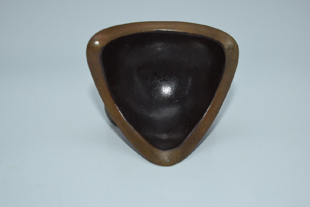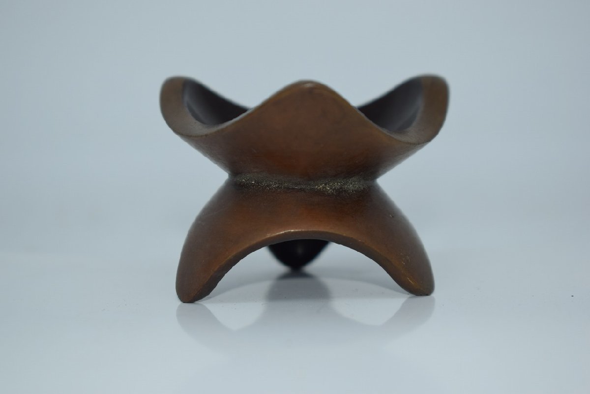 茶道具 三つ葉 蓋置 唐銅 径5.3cm 高さ3.8cm 錆び、擦れ、汚れはありますが、本体はしっかりしています、お稽古にお使いになるには差し支えありません。
