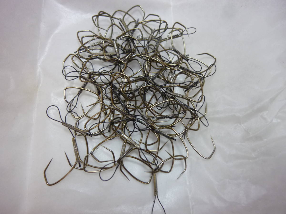 ◆矢島長耳の針を蝶針にして輪っかを付けたコロガシ用の針です。オリジナルコロガシ仕掛を製作する方、替針として使用する方、100本入りを巻いてますので、たっぷり50本入っております。尚、根巻糸と、輪っかのカラーが、画像と違う場合がありますので、ご了承下さい。
