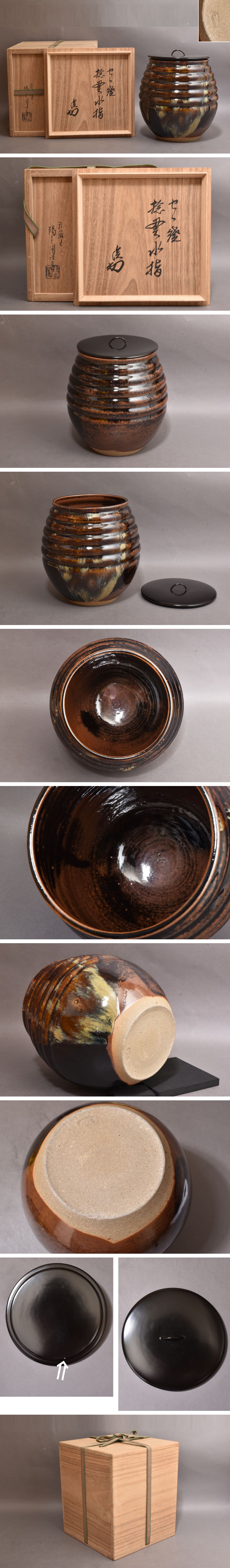 4432 淡海ぜぜ 捻貫水指 淡々斎書付 膳所焼 陽炎園 共箱