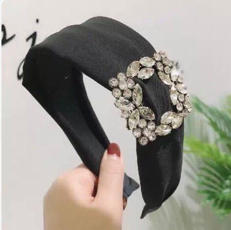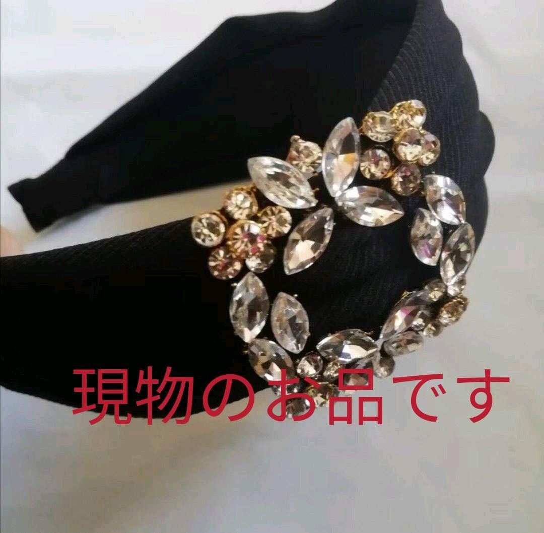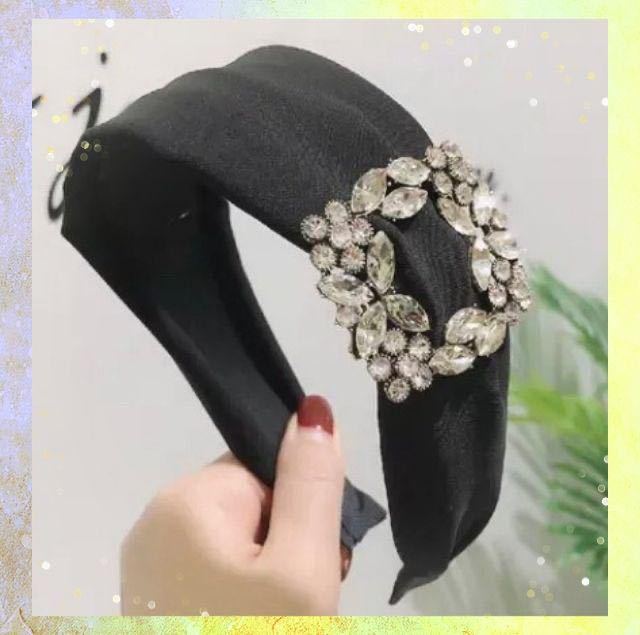ビジュー カチューシャ 黒ブラック 太めぷっくり ヘアアクセ ヘアーアクセサリー ヘアバンド 夢かわ キラキラ 幅広 シンプル 無地 結婚式 パーティー 二次会 トレンド デイリー カジュアル レディース