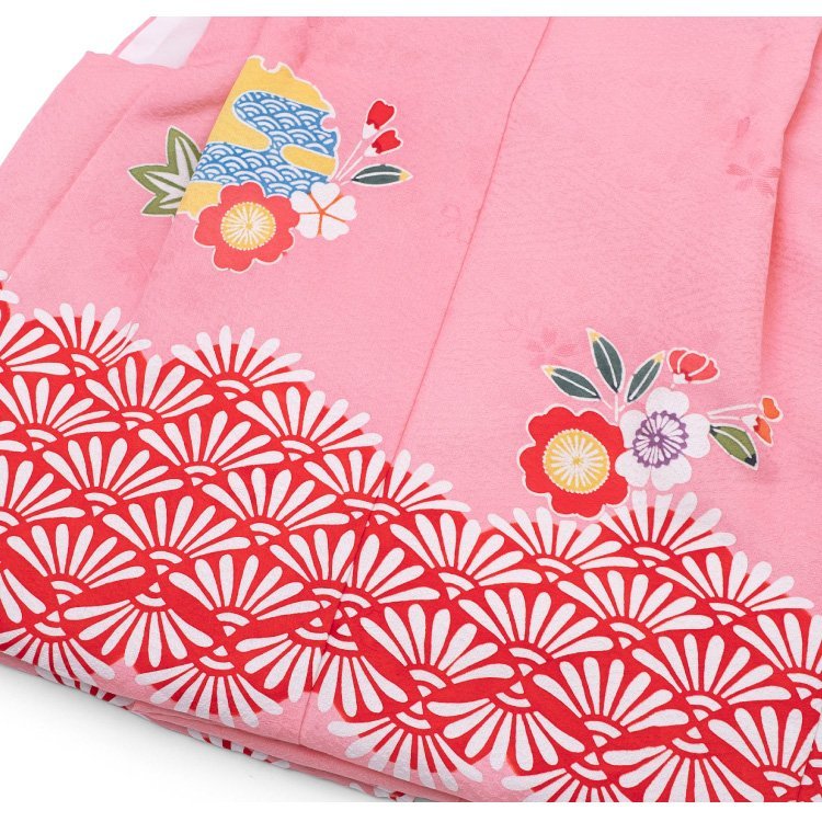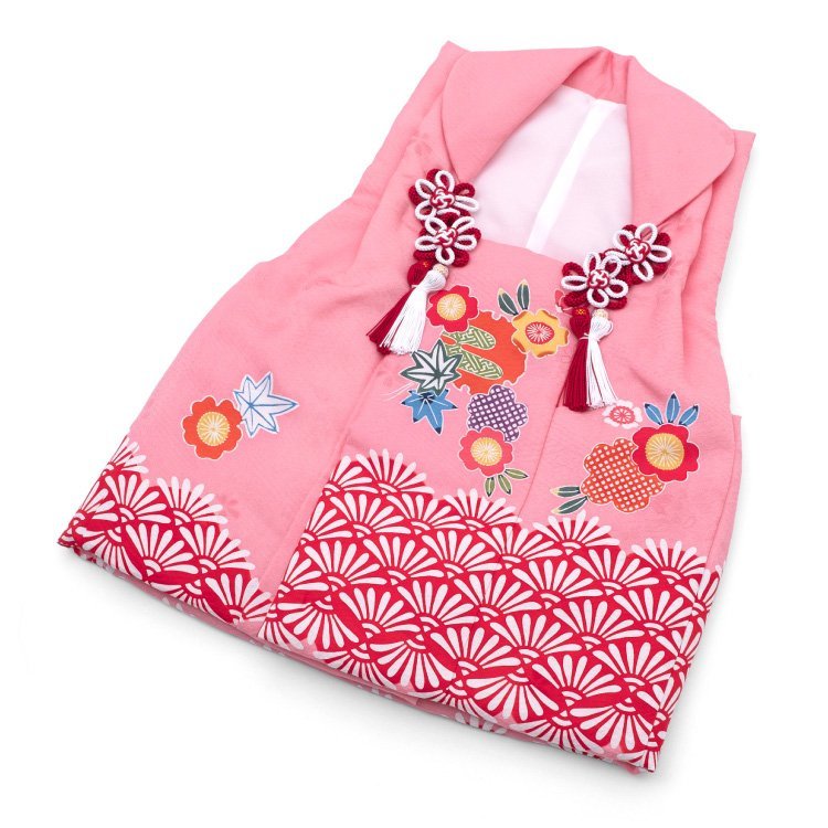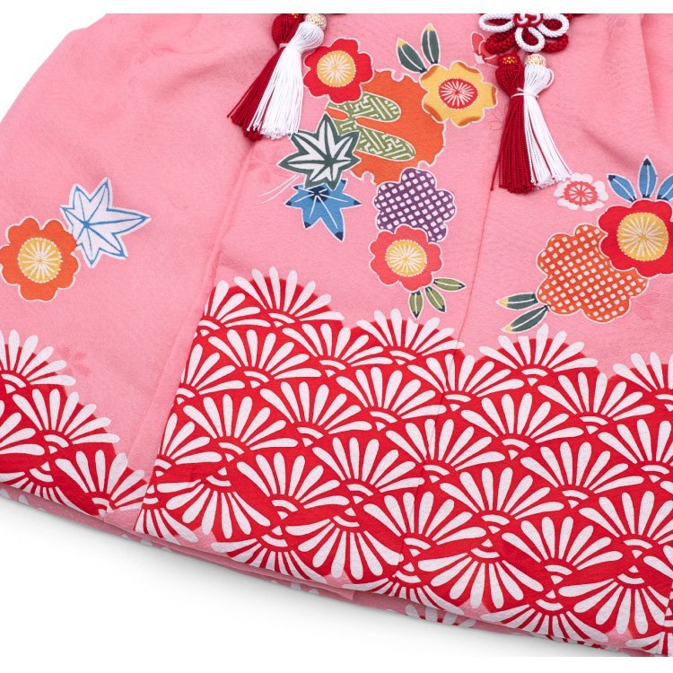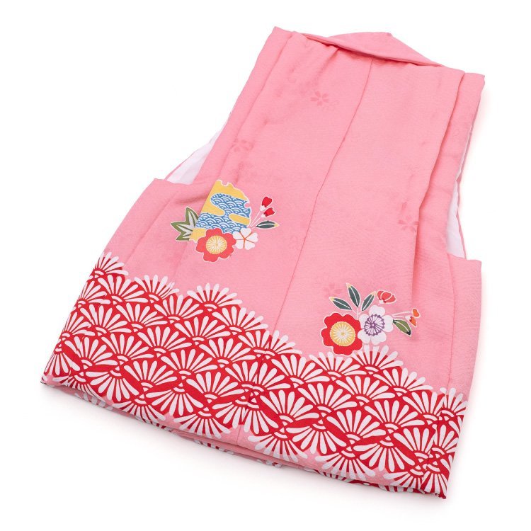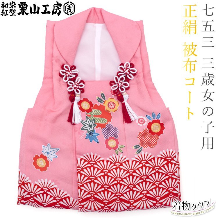 商品説明 | 栗山工房の被布コート。 地模様入りの生地でピンクの被布コートです。 どんな色の着物にも合わせやすい、七五三・被布コートです。 |