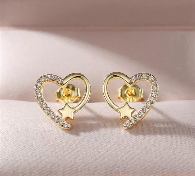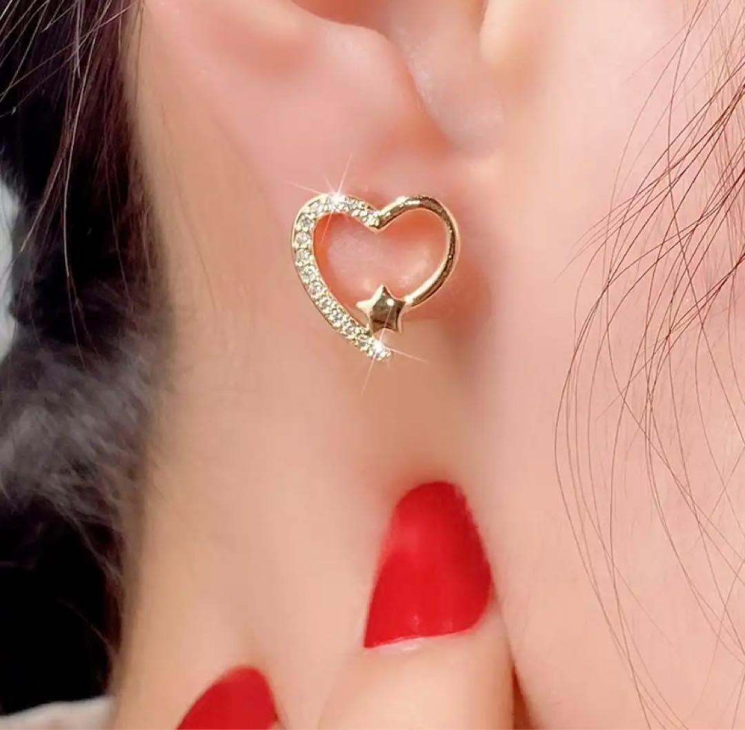 426 ゴールド ハート ピアス czダイヤモンド ステンレススチール ジルコニア ジュエリー アクセサリー インポート 韓国 宝石 ブライダル