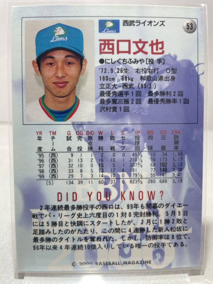 西口文也 53 BBM 2000 ベースボールマガジン 西武ライオンズ