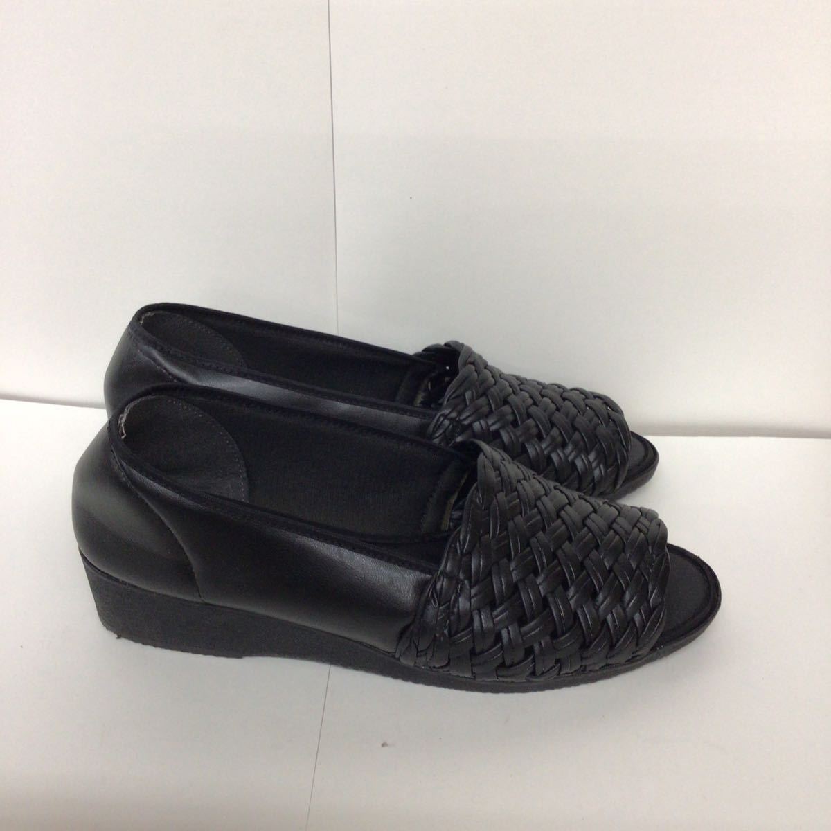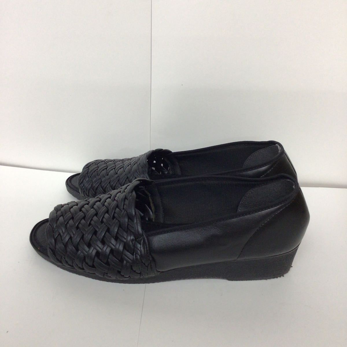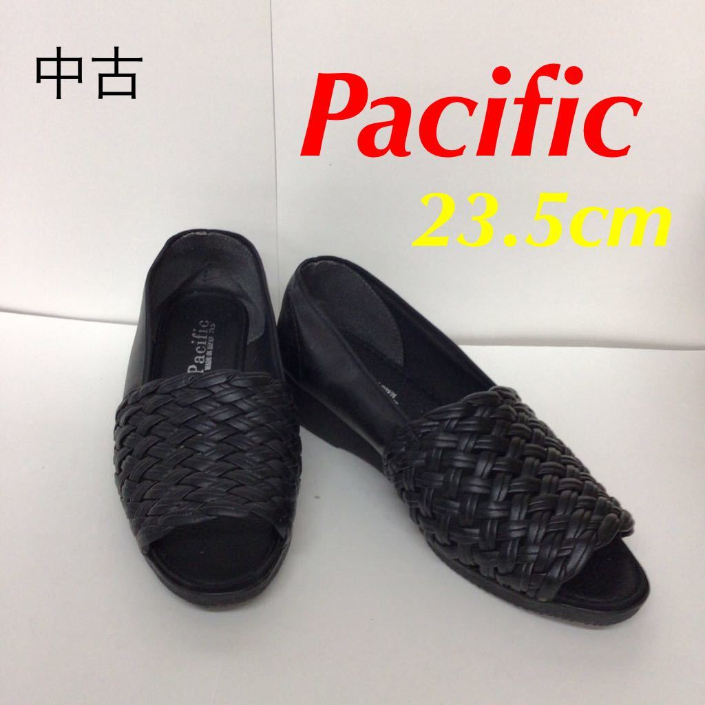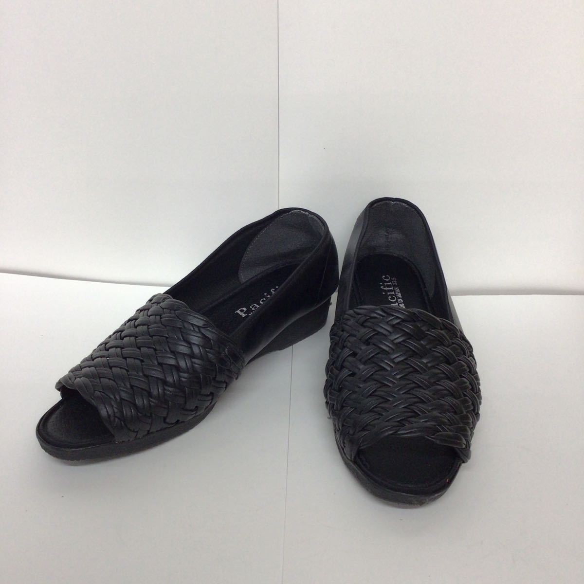 【売り切り!送料無料!】A-330 Pacific!スリッポン!サンダル!黒!23.5cm!ブラック!オープントゥ!編み込み!中古