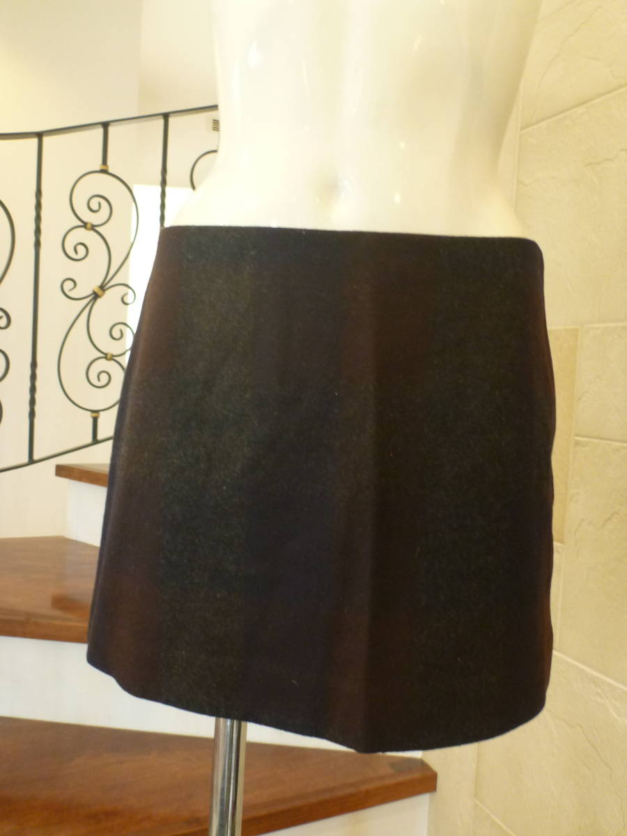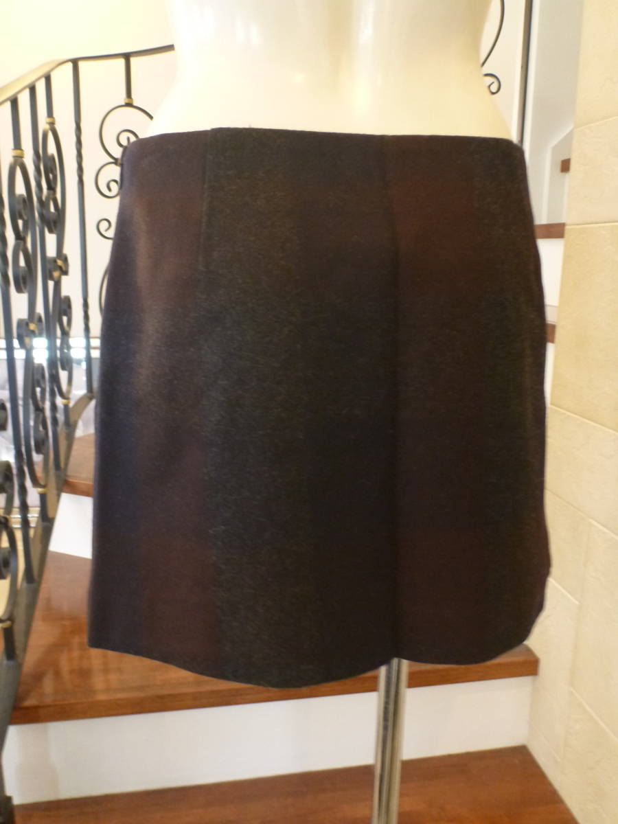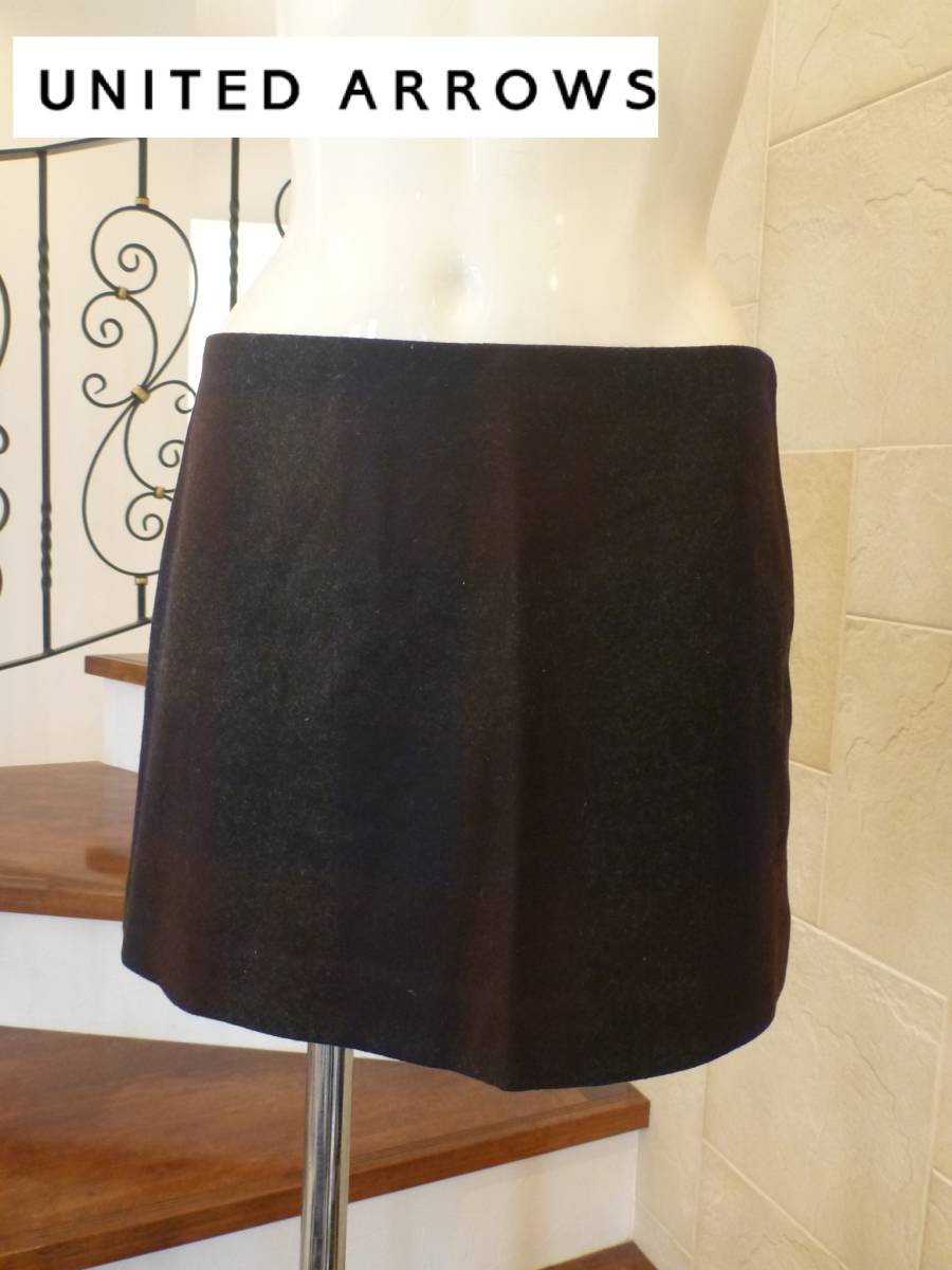 1.5万 超美品 UNITED ARROWS ユナイテッドアローズ★グレー×紺×茶 ウール 冬生地 ミニスカート 36 S相当