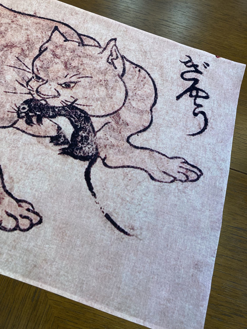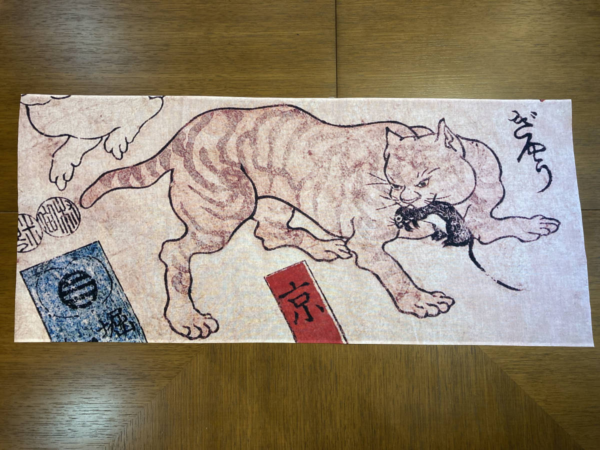 歌川国芳 手ぬぐい 浮世絵 其のまま地口 猫飼好五十三疋 京 ぎやう 手拭い サイズは約78cm 35cm
