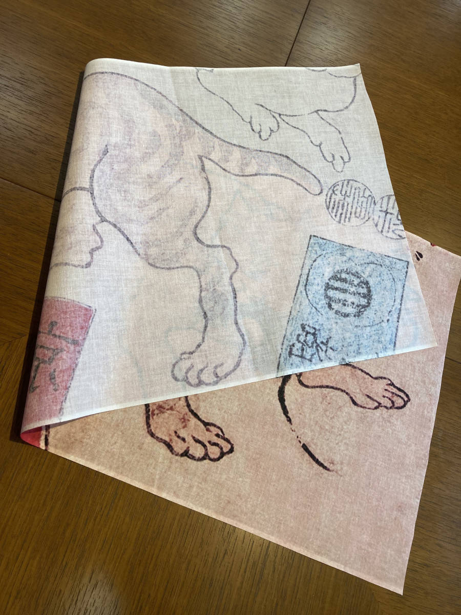 最高級の手ぬぐい生地の特岡に反応染料で捺染プリントしています。