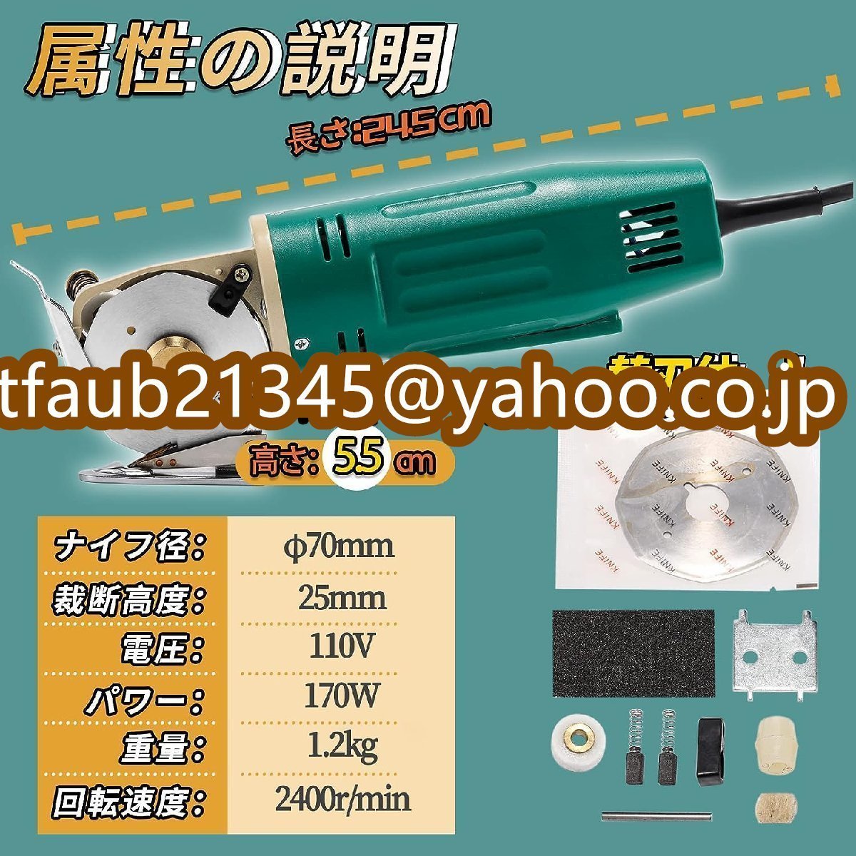 電動カッター 切断厚み25mm 1.8mm電源コード 170W 手持ち式切断機 布/レザー/合皮/雑材/段ボールに適用 φ70替刃 工事不要 研げる