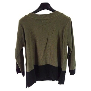 KFC2619◇ 新品 トップス ガーター切替配色 セーター ニット 長袖 ボートネック 3Lサイズ グラスグリーン/ ブラック