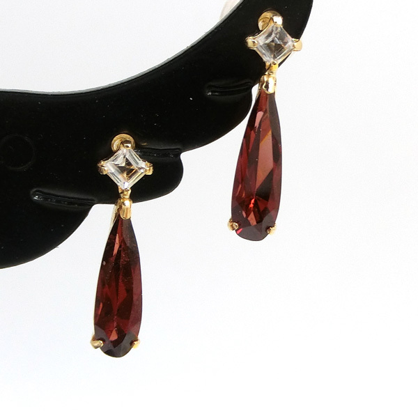 【送料無料】K18YGガーネット ホワイトトパーズデザインピアス■3401