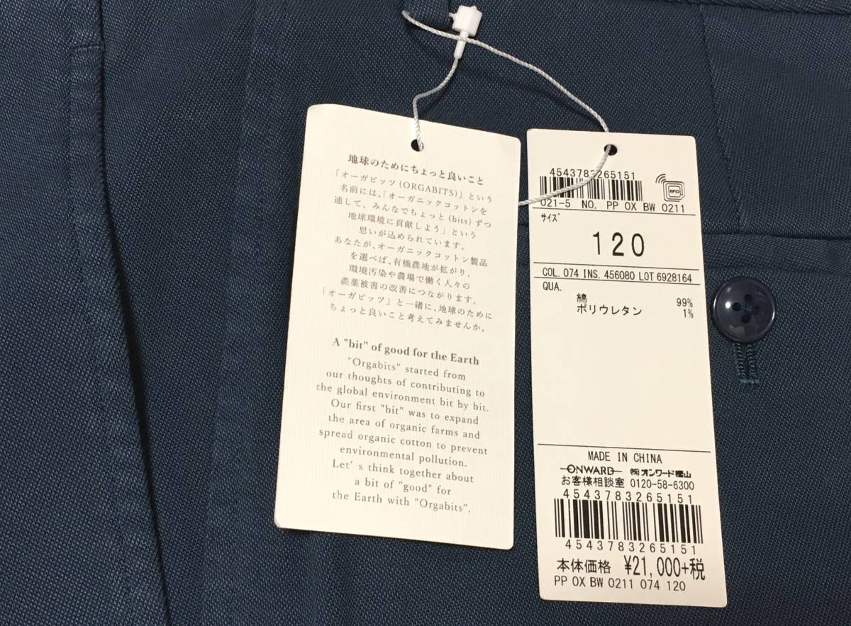 J.PRESS オーガニックコットン ストレッチパンツ ノータック 120 オンワード 定価23.100円