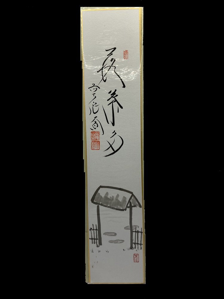 【商品名】 茶道具 短冊 画賛 【画 門 /賛 落葉多】 西垣大道筆