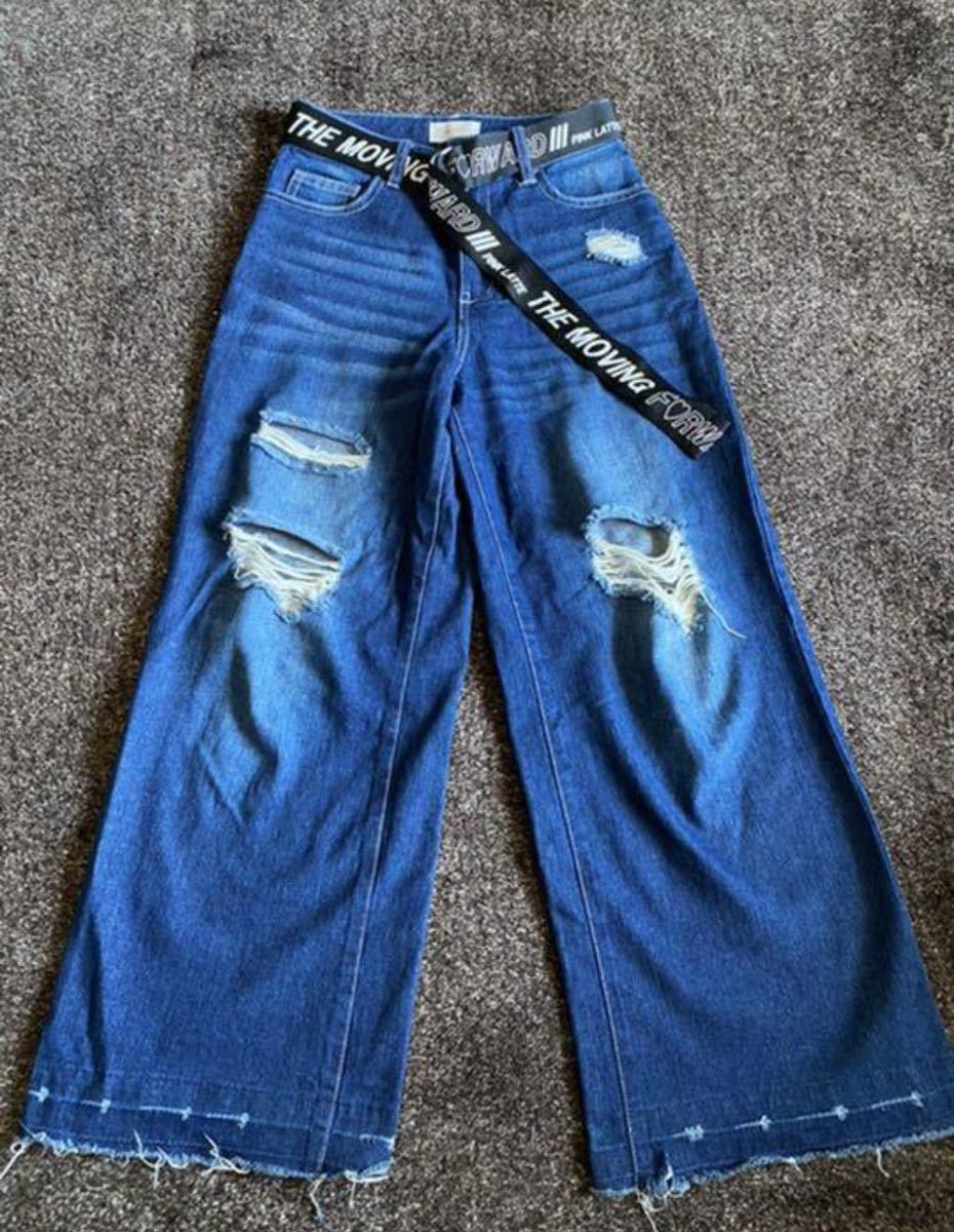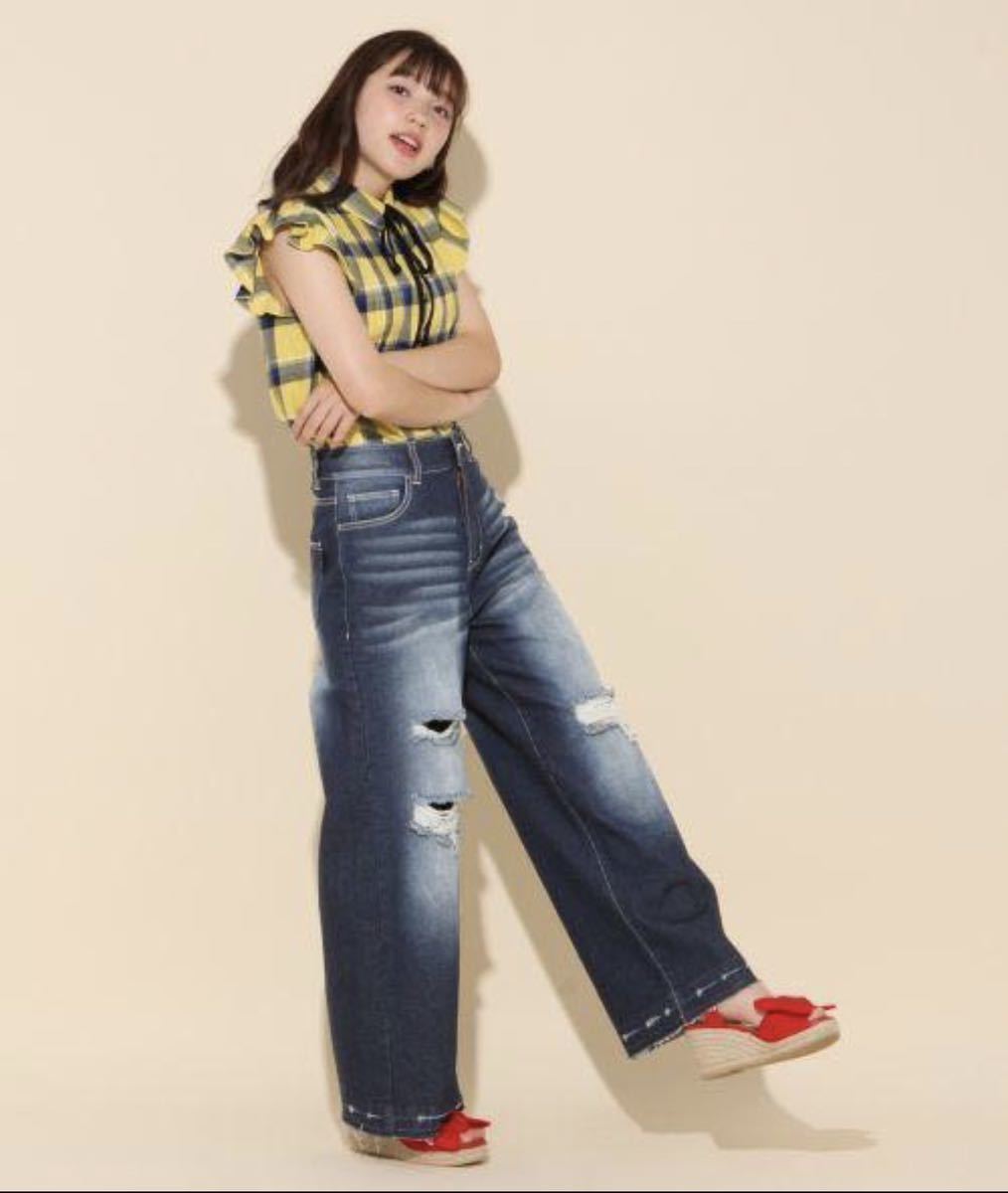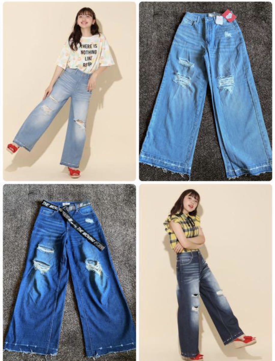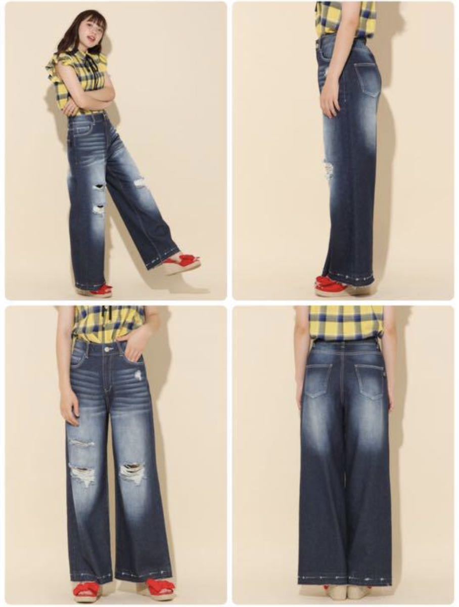 ほどよいクラッシュ感とワイドシルエットがかわいいデニムパンツ!