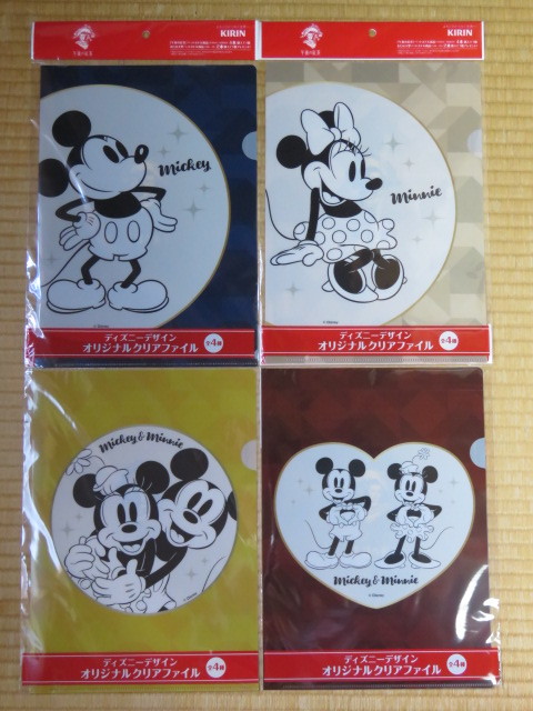 即決230円 キリン KIRIN オリジナル ディズニーデザイン クリアファイル 全4種セット ミッキーマウス ミニーマウス 新品・未開封
