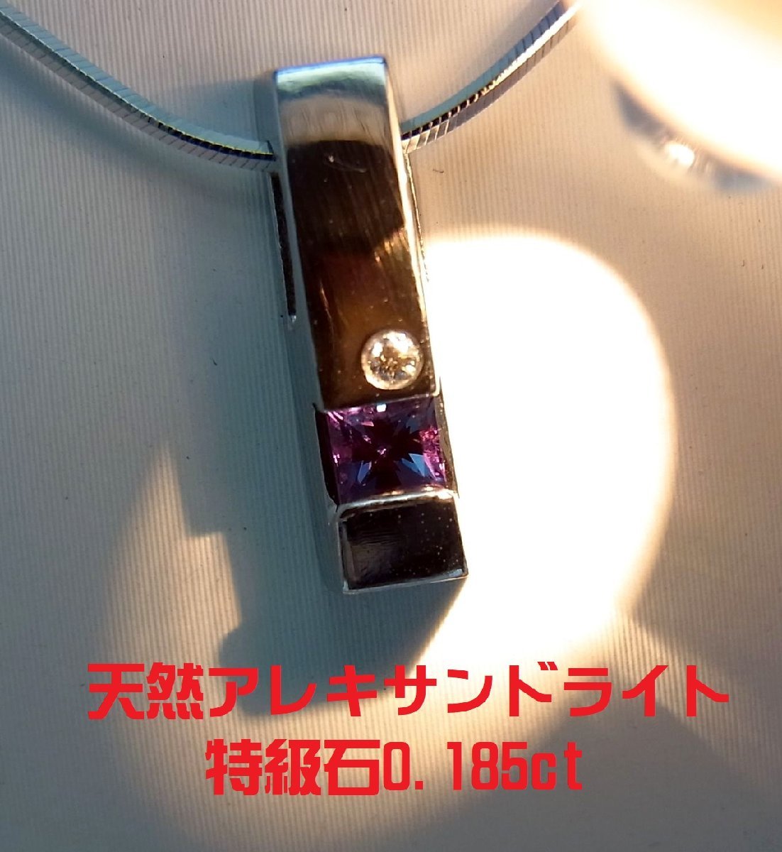 特級石 天然アレキサンドライト0.185ct 天然ダイヤ プラチナ ペンダントネックレス 商品動画有 送料込み