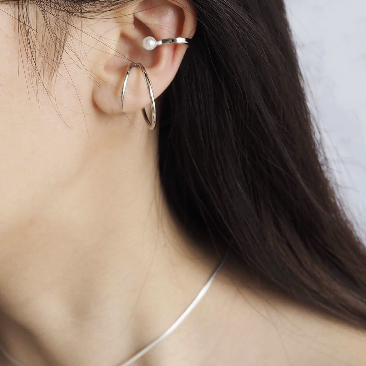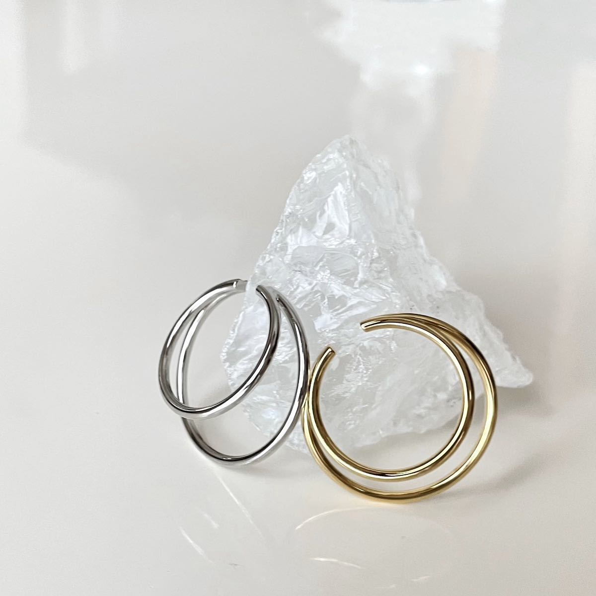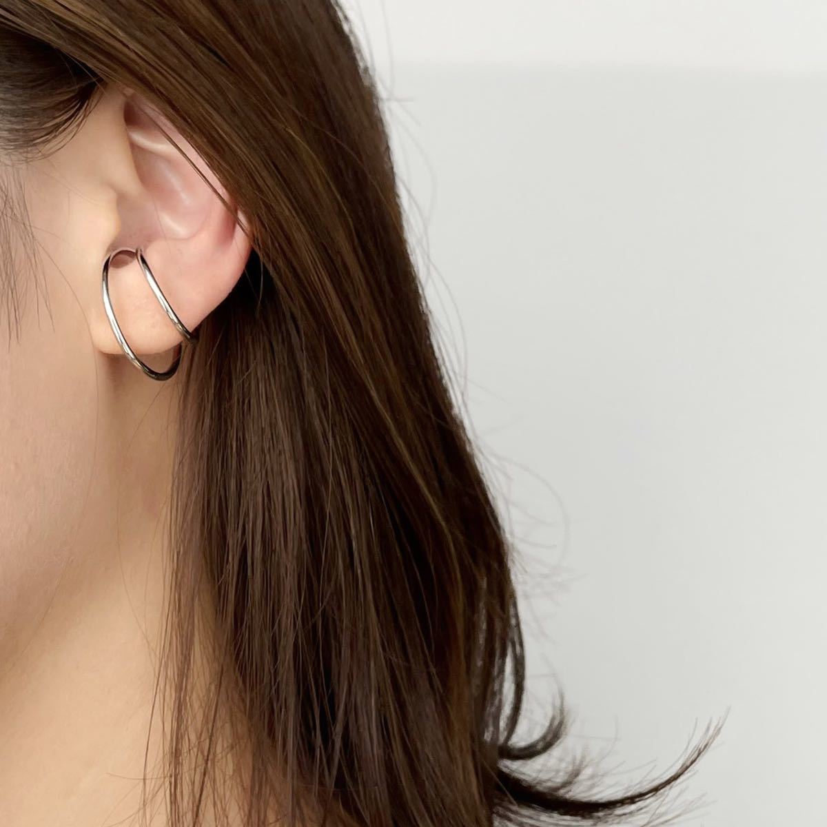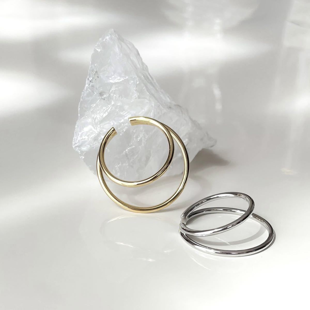 イヤーカフ イヤーカフス イヤカフ 片耳用 ピアス イヤリング ダブル ニュアンス サークル メタル シルバー ゴールド シンプル 上品 軟骨 韓国 ワンポイント レディース トレンド インポート アクセサリー 大人 かわいい きれいめ おしゃれ TIINA tiina ティーナ