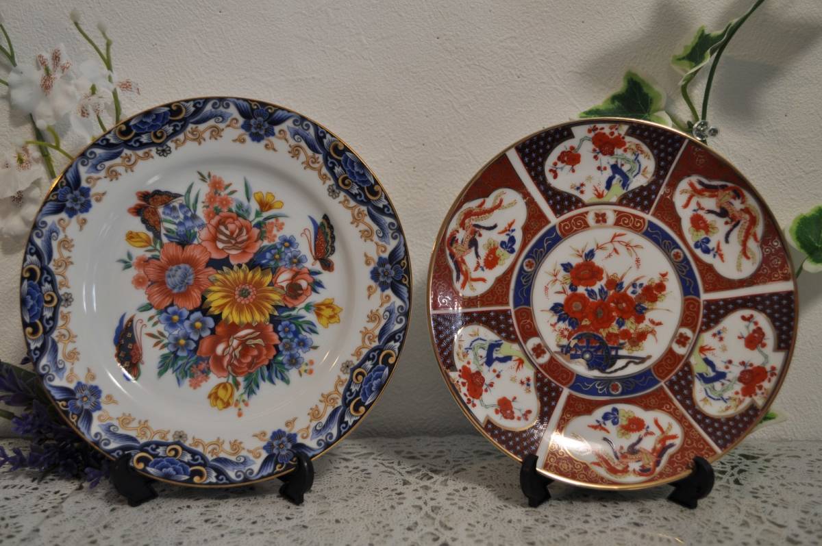 2個・16.2~17cmD 伊万里 秋草と鳳凰・御所車2絵柄セット、24金線仕上げ・ 飾り皿、又ケーキ皿・食器、取り皿としてもお使いください