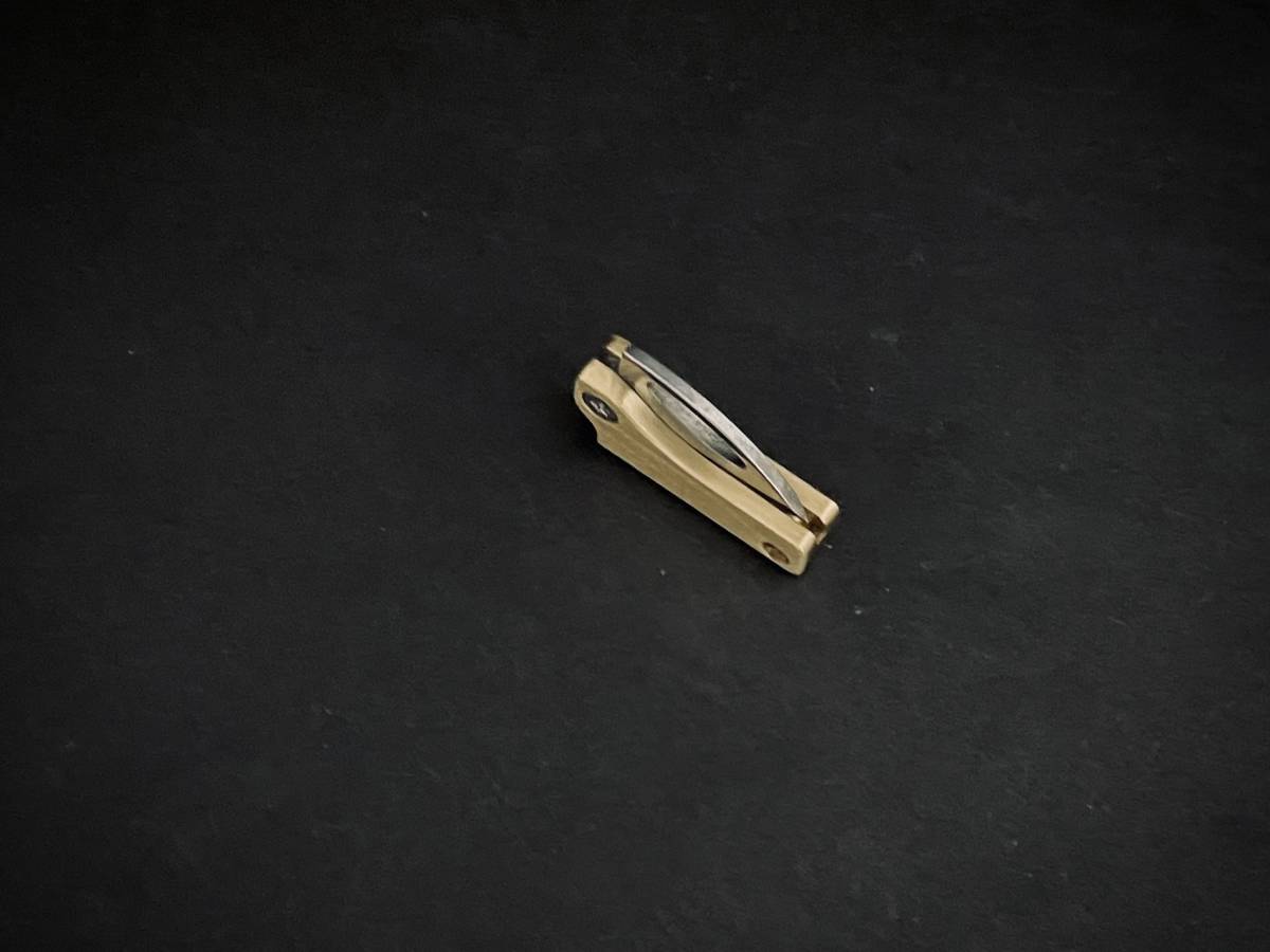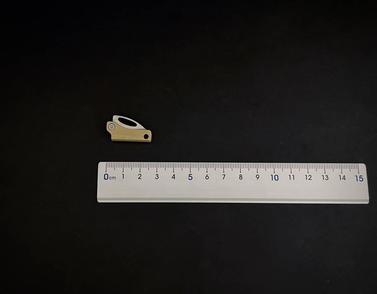 刃:ステンレス製 ハンドル: 真鍮 全長:4.7cm (閉:2.7cm) 刃渡:1.5cm 刃厚:1.4mm