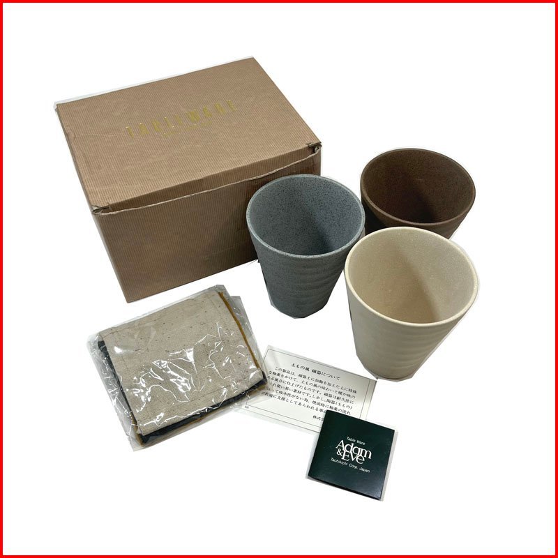 中古●Adam&Eve アダムアンドイブ トリオフリーカップ●コースター付き 湯呑み グラス 焼き物 たち吉 札幌