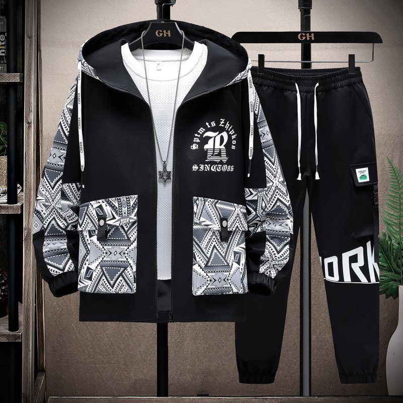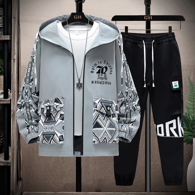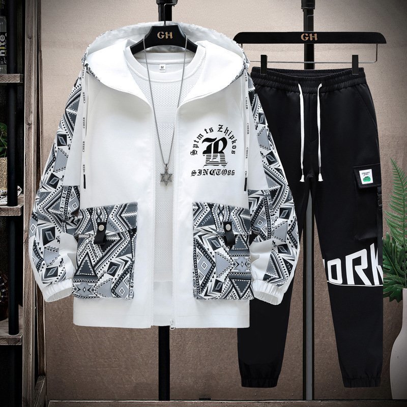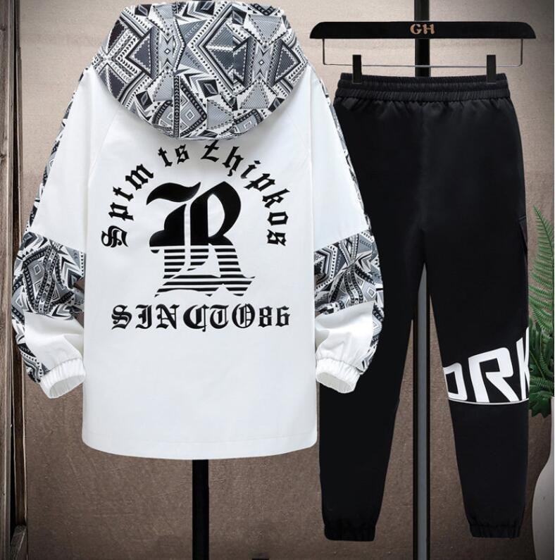 春秋ジャージ メンズ パーカー サルエルパンツ 上下セット ジャケット カーゴパンツ セットアップ トスポーツウェア アウター 白系 M~4XL