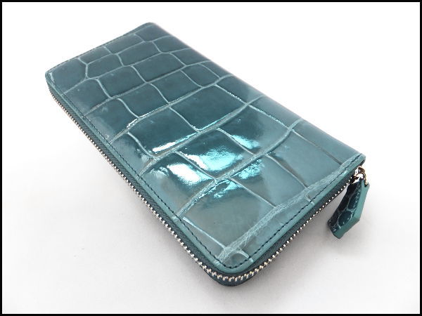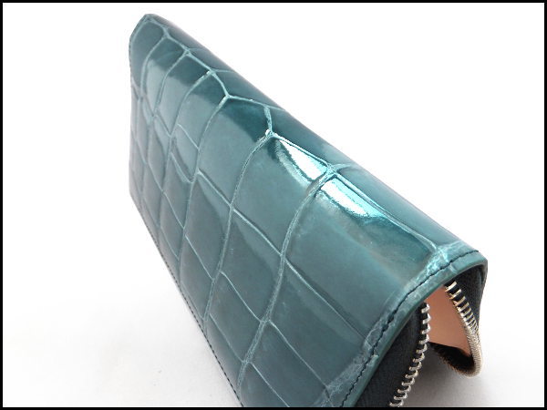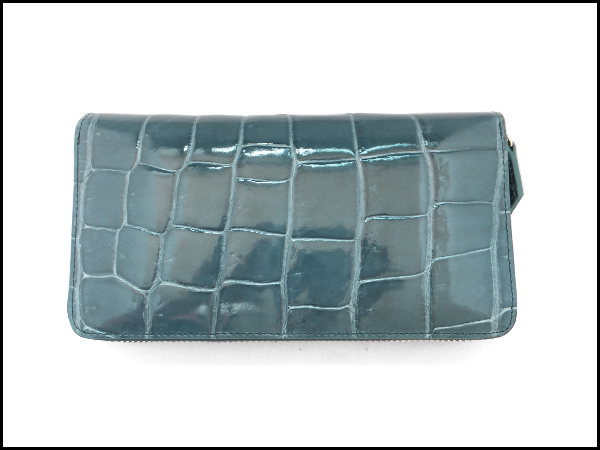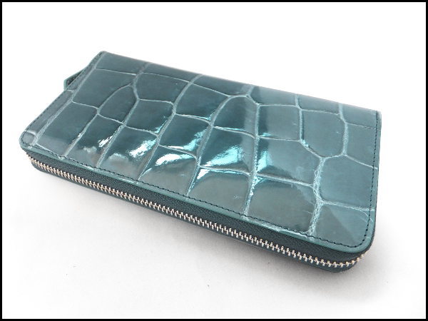 期間限定★ゴダン GODANE特注 美しい艶シャイニングクロコダイルベリー革 内側イタリア製ヌメ革 ラウンドジッパー 長財布 AstralBL/772
