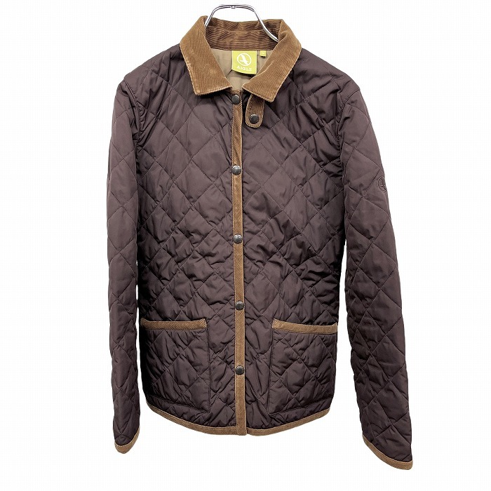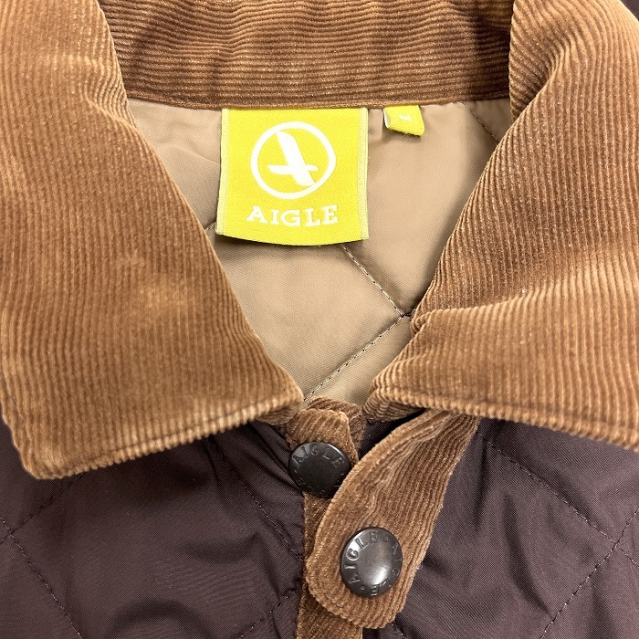 商品タイトル | エーグル AIGLE 中綿 キルティングジャケット 一部コーデュロイ 長袖 無地 ドットボタン留め ポリ100% M ボルドー 赤茶系×茶 レディース |
