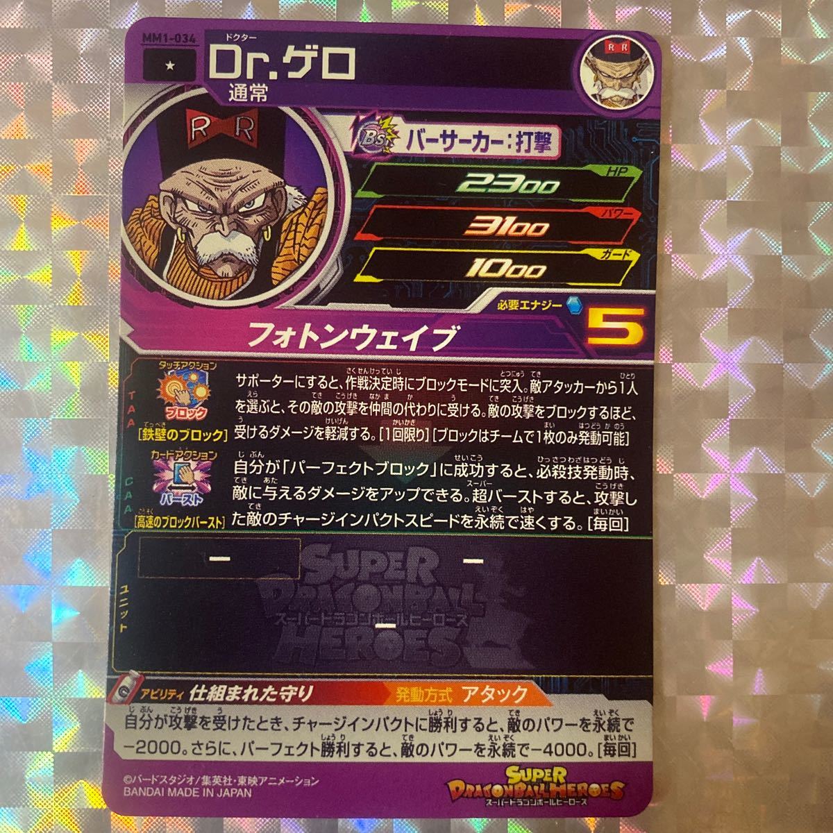MM1弾コモン/ Dr.ゲロ(通常)/ MM1-034/ 技:フォトンウェイブ/ スーパードラゴンボールヒーローズ/ レアリティ:☆/ BANDAI